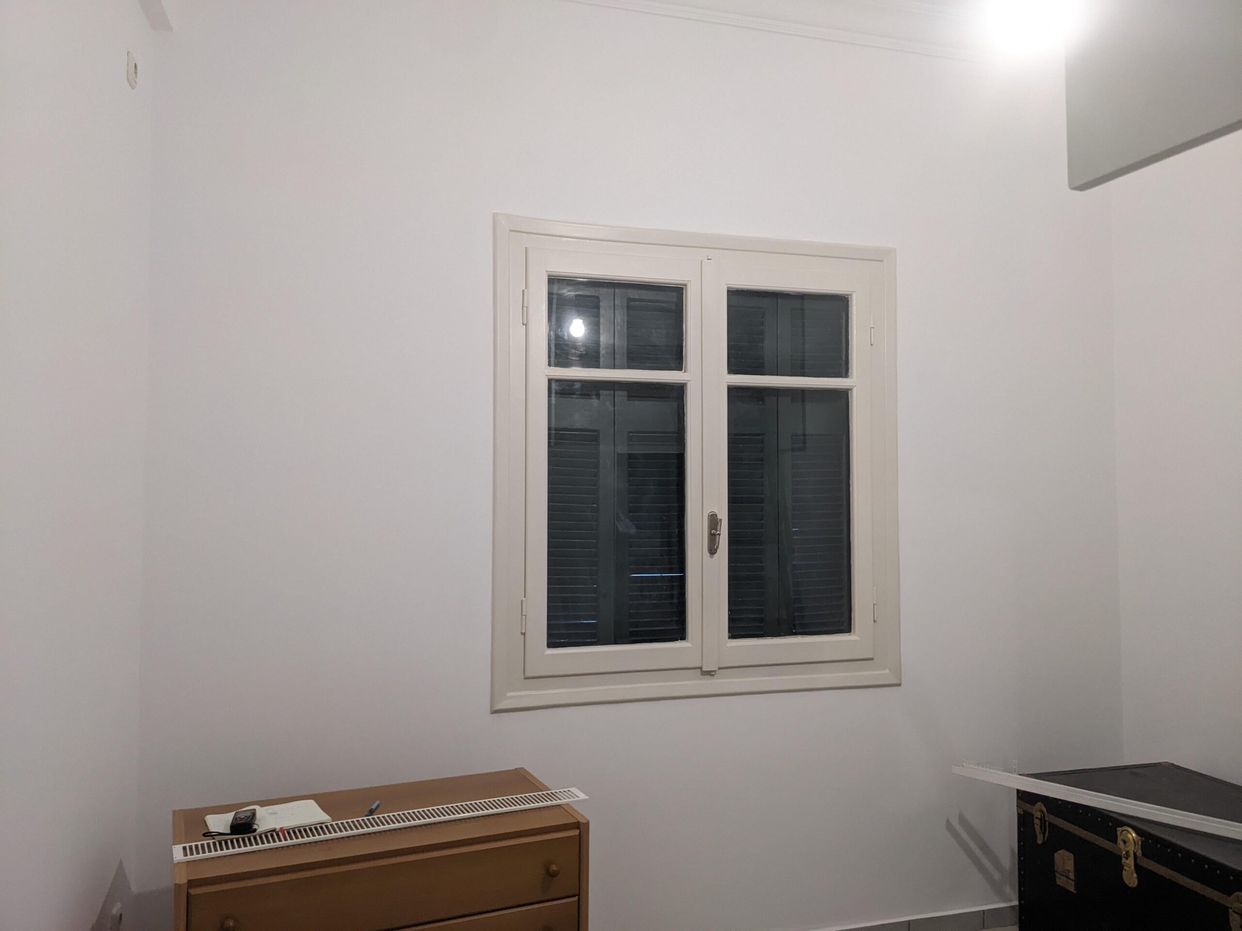 We have already painted the rest of the house and it's white. All walls AND ceiling painted pure white. Not yellow-white or grey-white; just white. Without getting too much into it, there was a misunderstanding between us and the painters and they ended up painting the whole house white. Anyway, it's not bad but it makes the relation between the walls and the frames a bit odd to work with.
