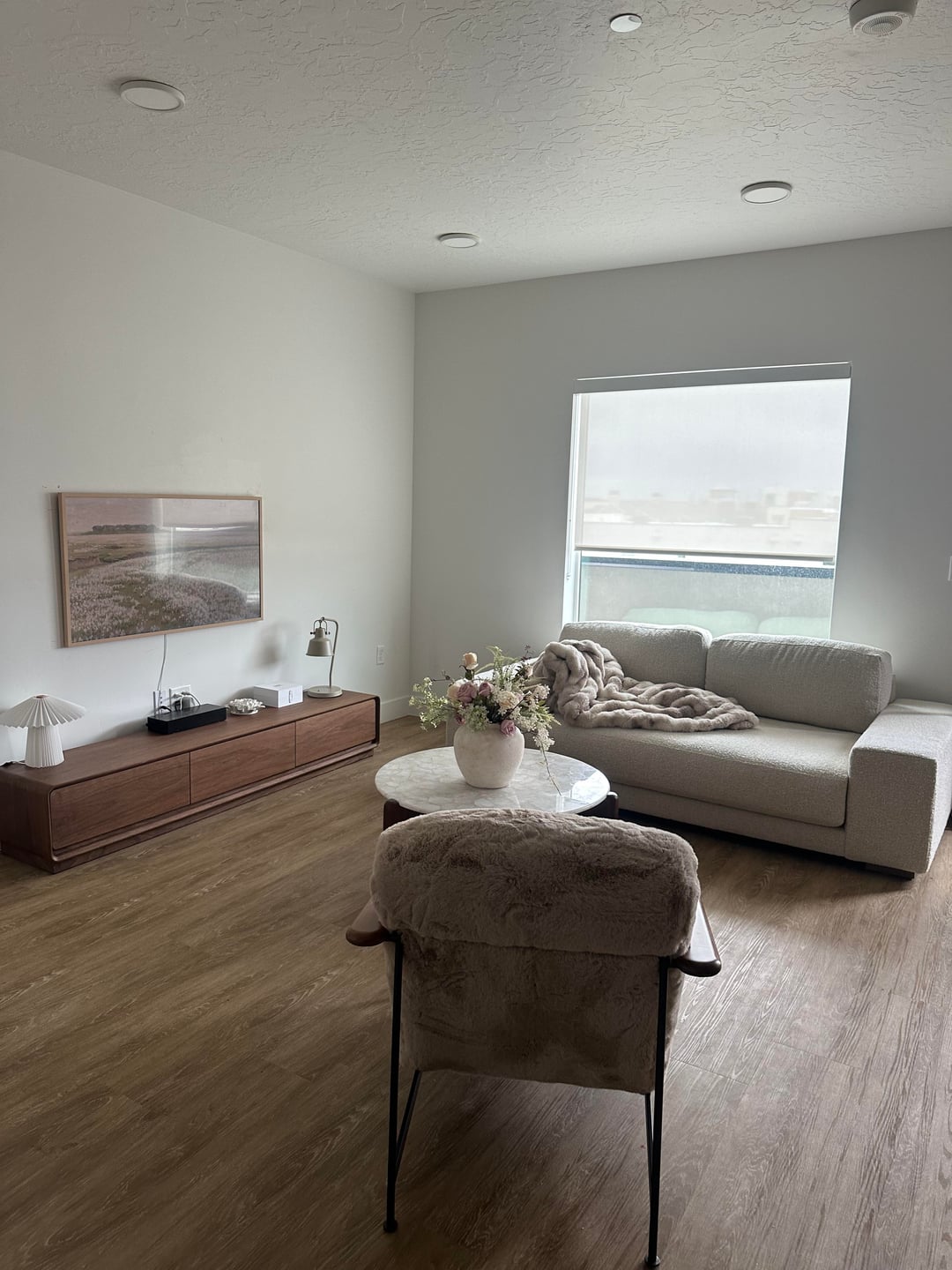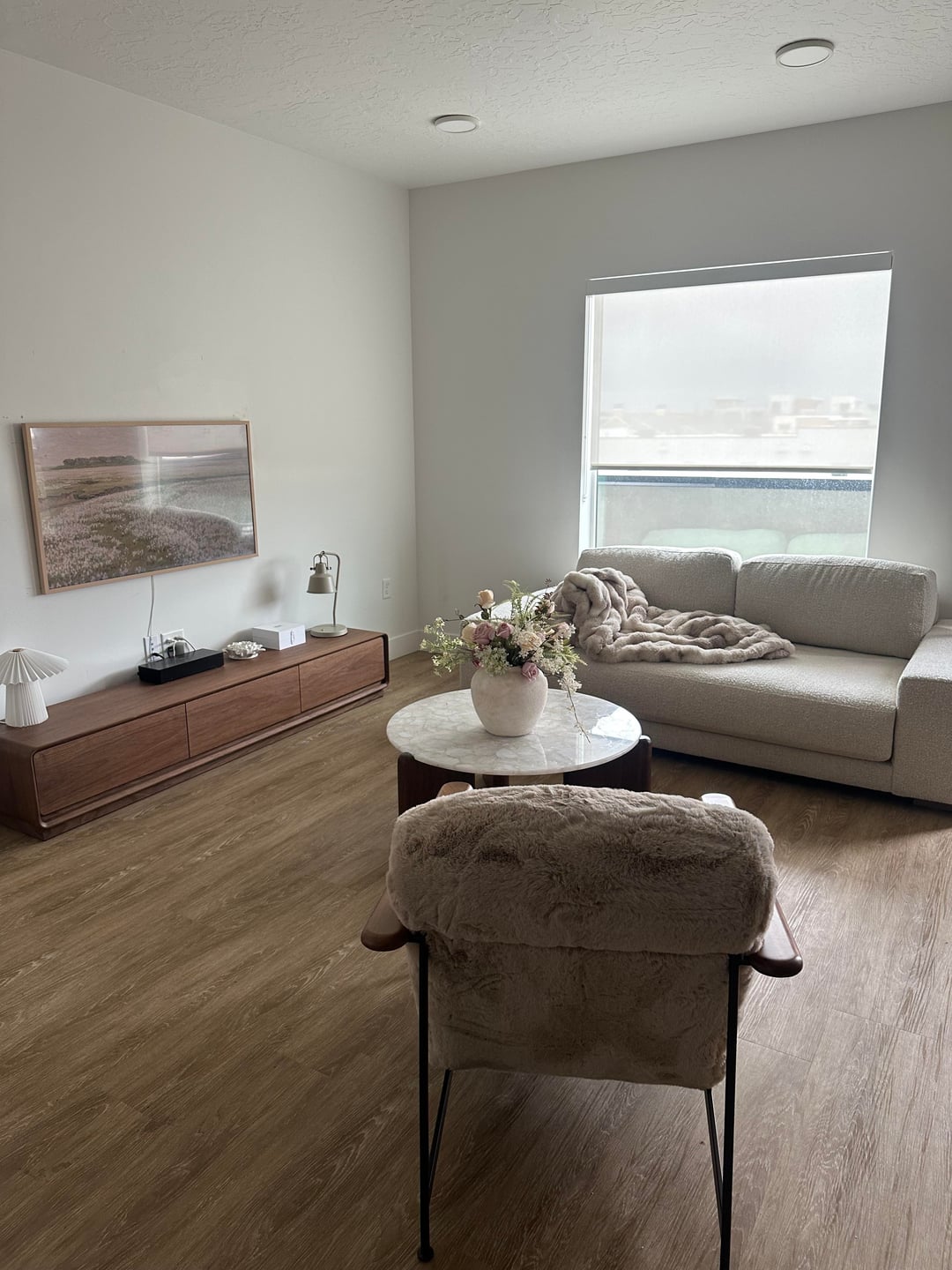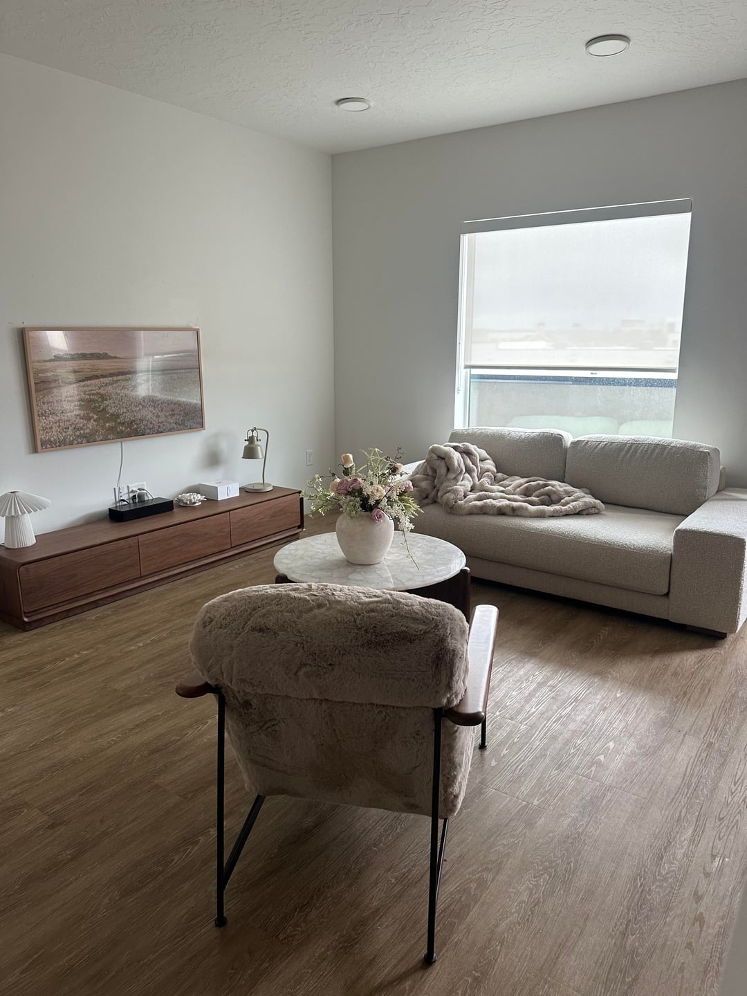 Not bad at all but definitely boring and sterile! I’d add a rug at the least, and potentially floor length curtains. And maybe some color! It’s so beige but maybe that’s your style which is fine
