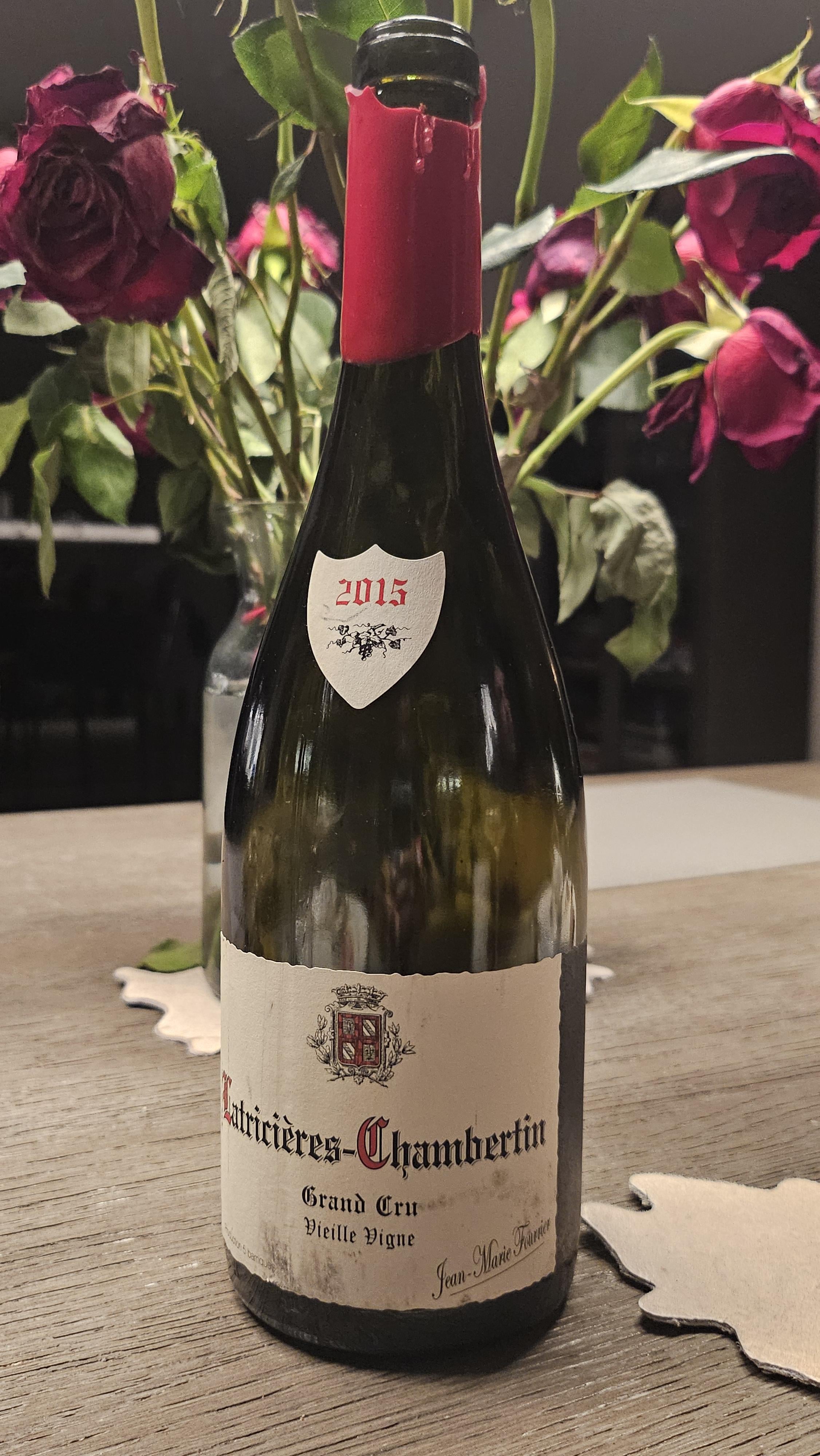 Fourrier negoce bottling. Started a bit reticent but opened up quickly to show strawberry, cranberry, cherries, black tea and spice. Finishes slightly bitter. Fun to drink but doesn't have the pedigree of the vineyard. More suited for younger drinking. 92 pts.