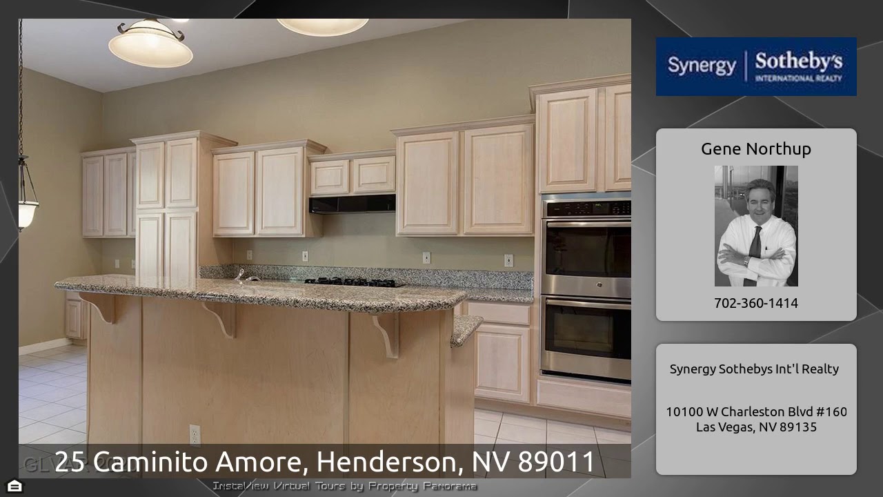 The Virtual Tour for the property at 25 Caminito Amore, Henderson, NV 89011 listed for $550,000: Other homes for sale by Gene Northup of Synergy Sothebys Int'l Realty: South shore Lake Las Vegas Mediterranean-style home with elegant features throughout the home. Open floor plan great for entertaining with chef’s kitchen, wet bar, temperature-controlled wine room. French doors to back patio. Master suite features fireplace, walk-in closet, and a recessed tub with separate shower. Casita with its own entrance. Desert landscaping and 2-car garage. Home includes LLV Sports Club membership.
