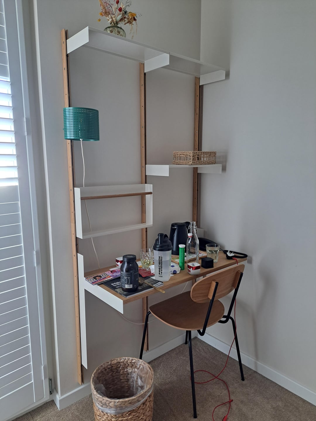 I'm currently staying in a hotel in Belgium and they have this cute modular/adjustable desk arrangement which is attached to wall mounted rails. Does anybody know where I can buy something like this? It would be perfect for one of the bedrooms in my house, which has very limited space.