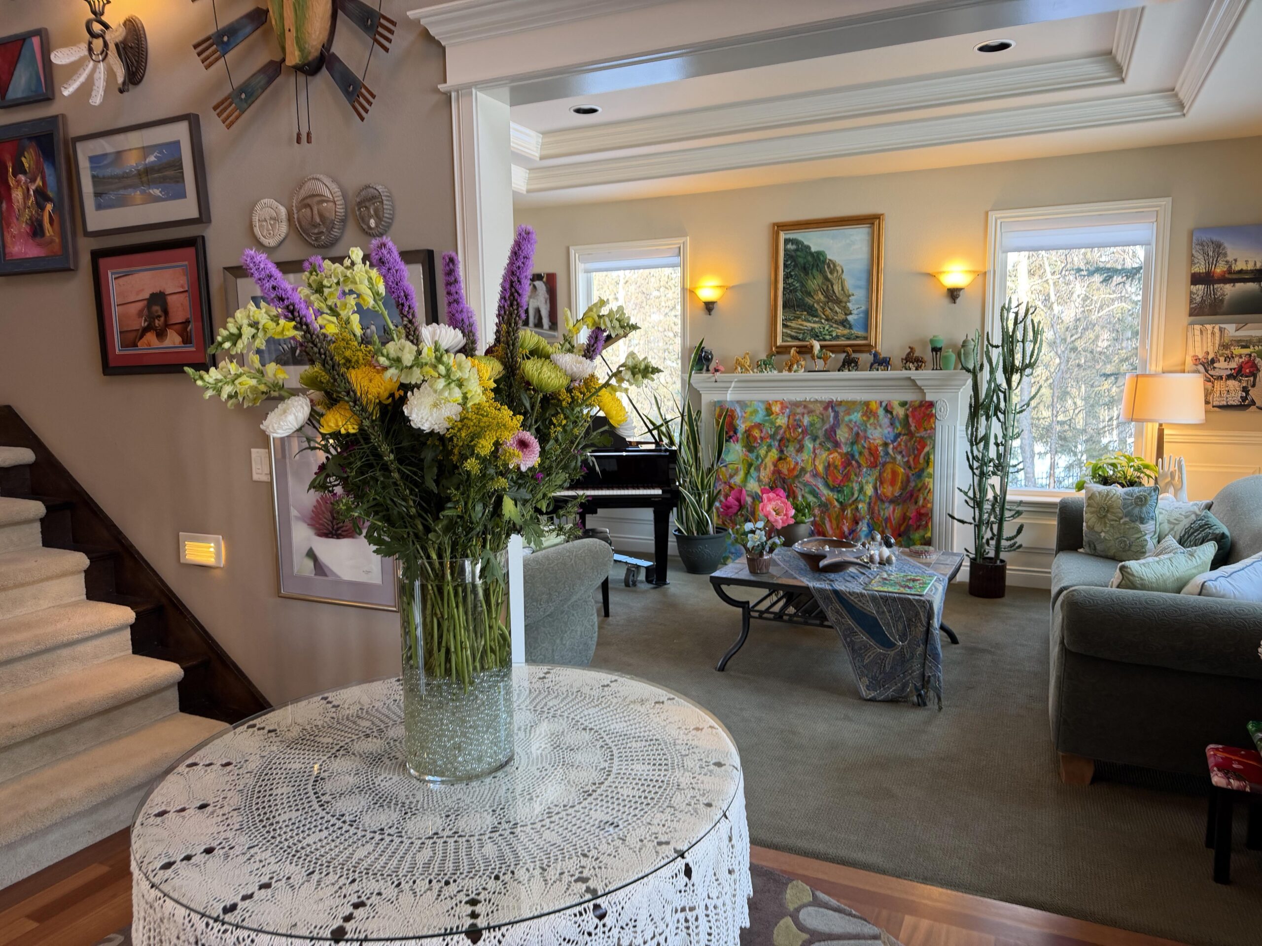 A painting I did recently leaning against the fireplace. A beautiful sunny -5F. (-21C) Alaska day.