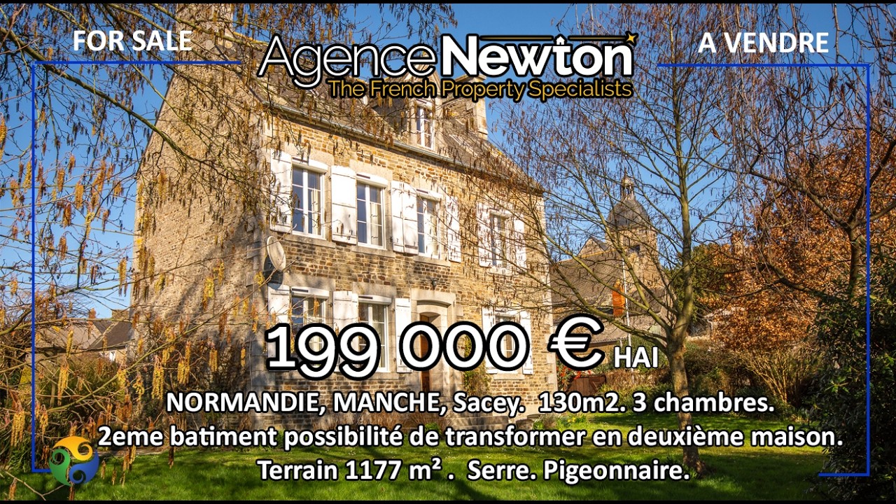 Lien pour plus des infos : https://www.agencenewton.com/vente/la-manche-sacey-maison-de-maitre-3-chambres-jardin-dependances-village