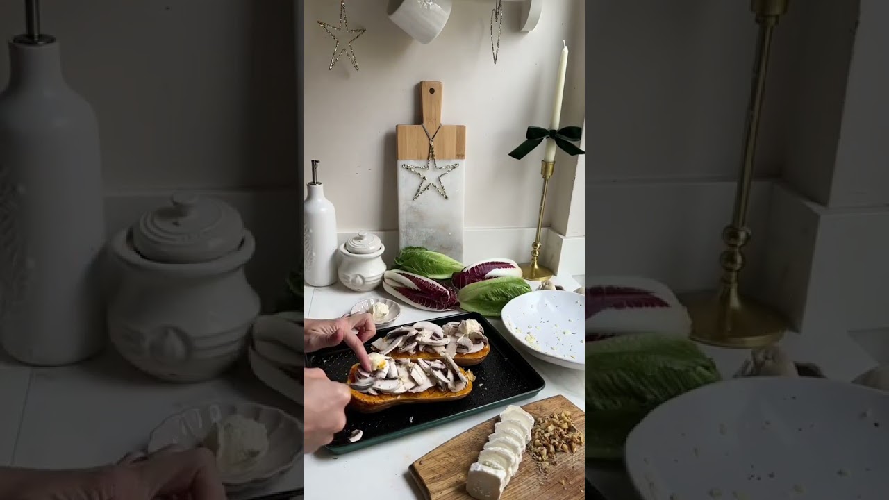 Roast butternut with garlicky mushrooms, topped with goat cheese and walnuts, served with a crisp chicory salad. A warming and simple lunch, perfect for the season! And happy Thanksgivings everyone ! INGREDIENTS Serves 2 1 butternut Olive oil 1 goat cheese 6 mushrooms 1 clove of garlic 2 tbsp of crème fraîche A handful of chopped walnuts Salt and pepper Rosemary Chicory salad Vinaigrette METHOD Follow the video and ask questions in the comments ♥️ #frenchlunch #frenchcuisine #lunchidea #frenchfood #vegetarianrecipes #frenchstyle #lunch #seasonalfood
