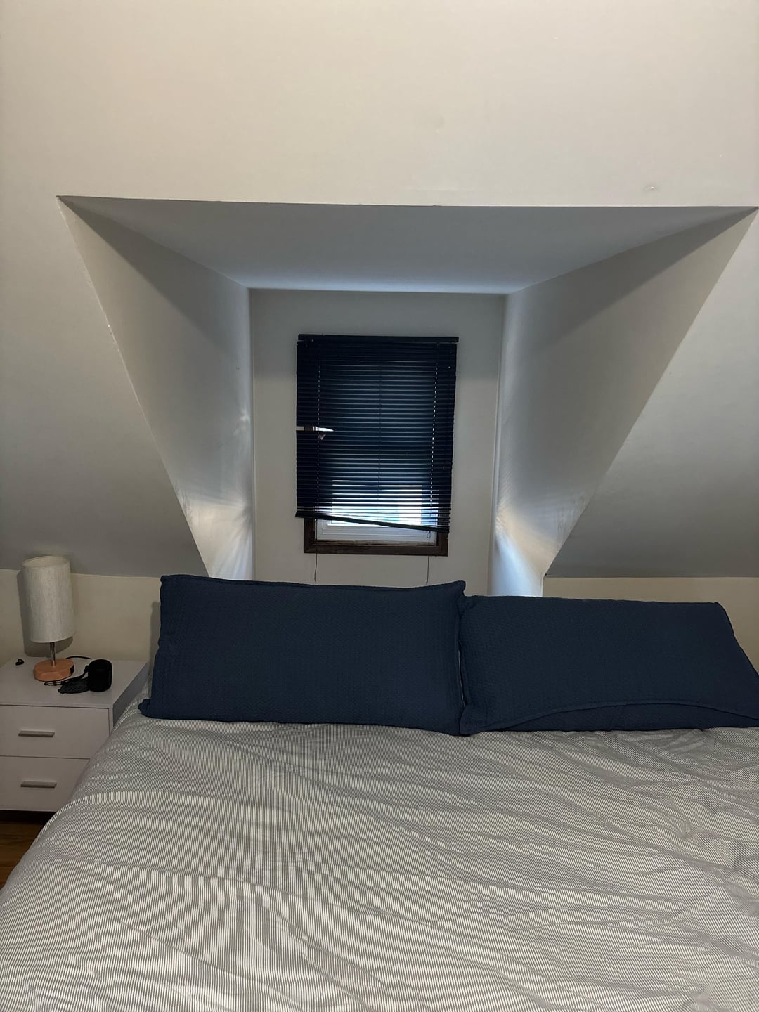 I feel like I want to see your room to see if the bed would make more sense somewhere else. This space behind my bed would drive me nuts.