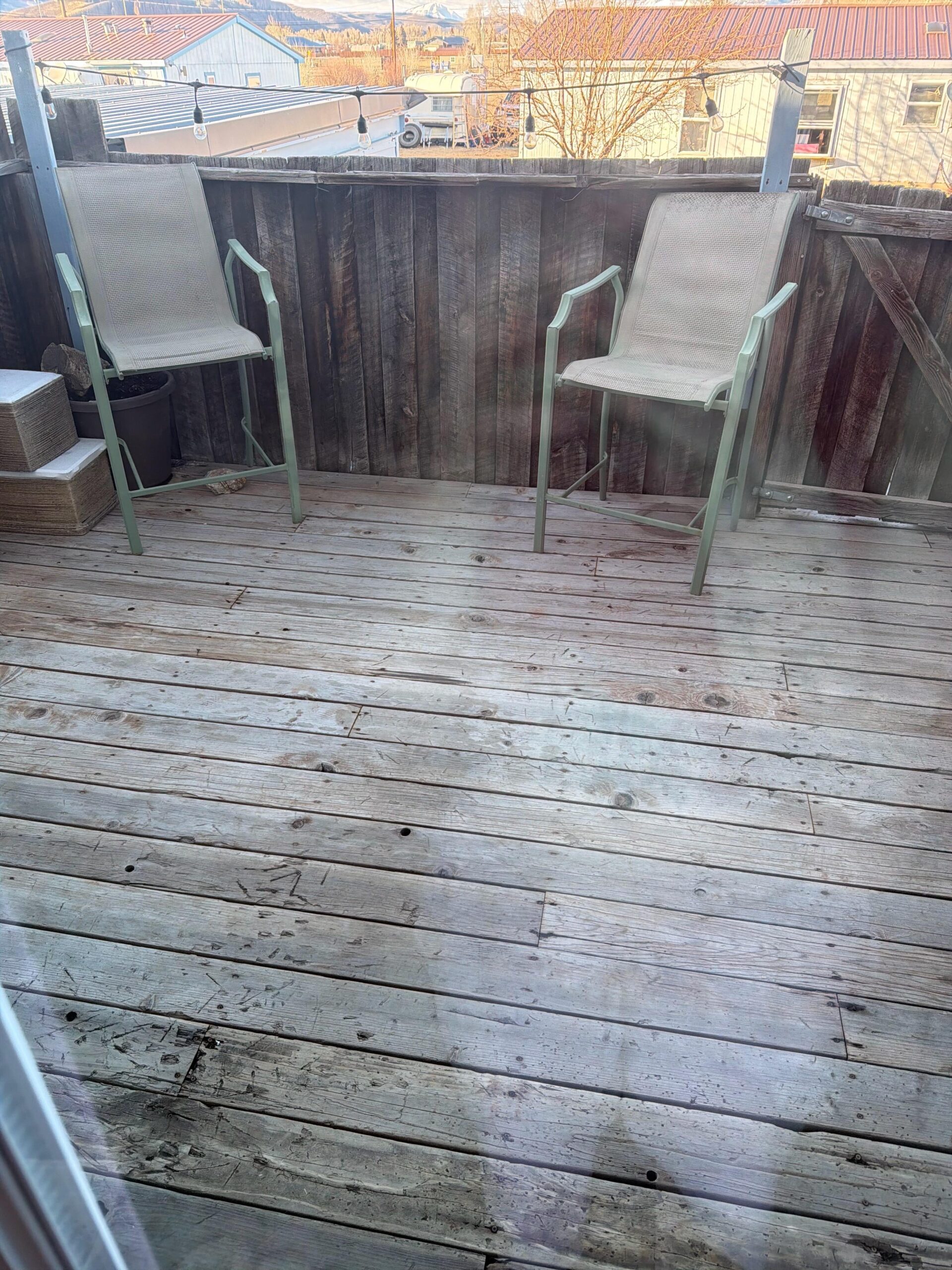Stain or paint; colorful rug or stencils; some green plants; bright pillows; fake grass or outdoor carpet square; string lights; painted pots……. Many things to consider,
