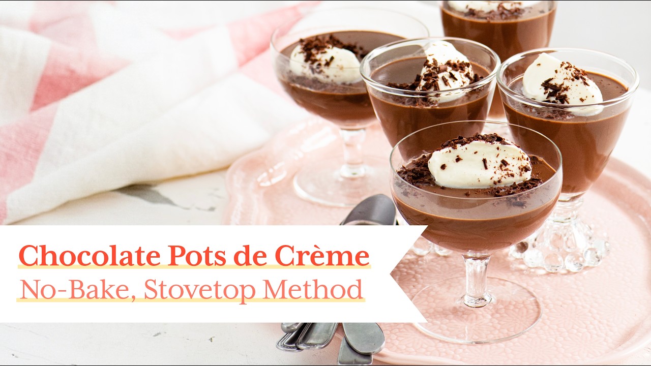 French Chocolate Pots de Crème (No-Bake, Stovetop Method, VIDEO)