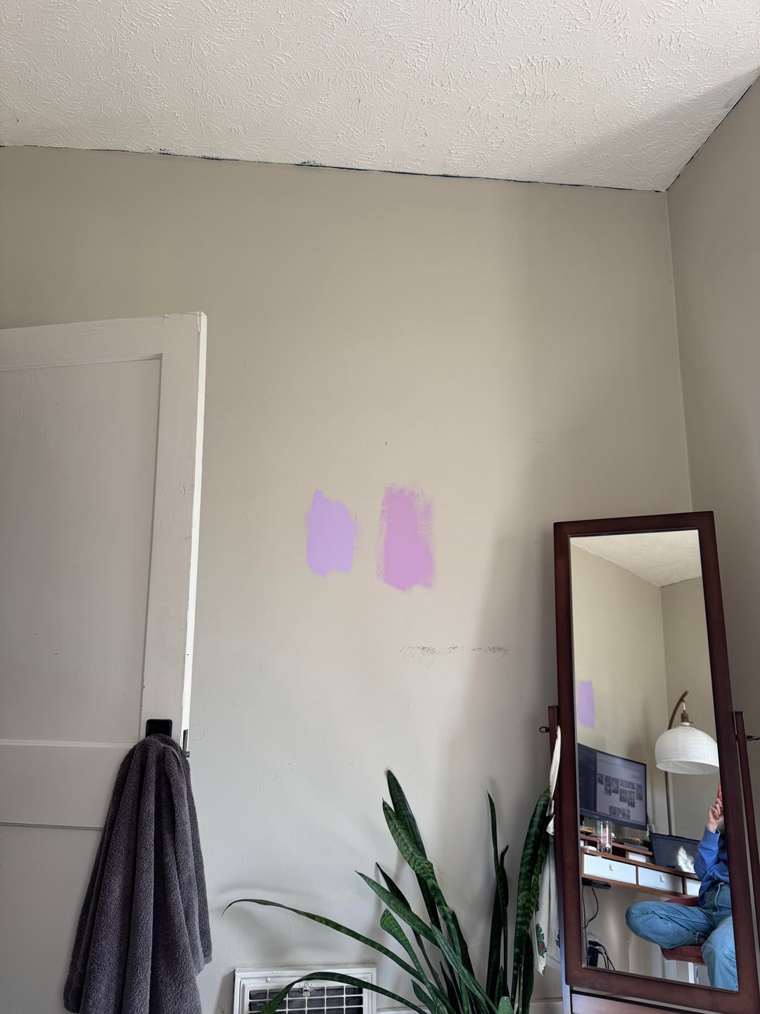 I know I should probably stick with my safer plan of soft green. But is there a purple that could work here?! I don’t like the swatch on the right (Sherwin Williams Novel Lilac) and I like the one on the left slightly better (SW Magical).