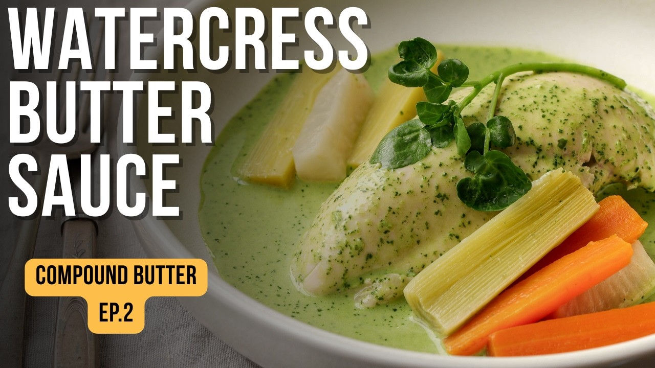 In this episode, we are stepping away from sautéing and learning the traditional French “concentration method” for perfectly poaching a chicken to keep it incredibly moist and flavorful. We’ll also be making a vibrant, raw Watercress Compound Butter, and using it to create a rich, velvety cream sauce that ties the whole dish together.