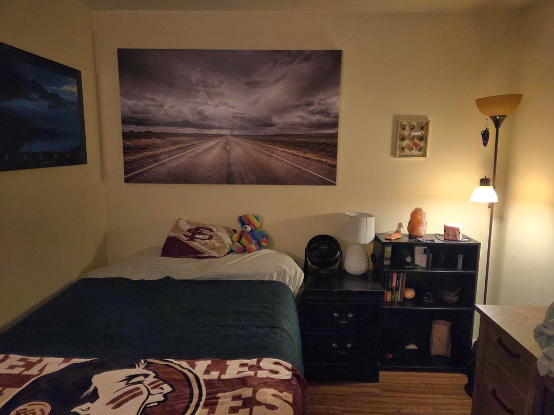 Im a college student with an apartment, and this is my room. I want my room to feel cozy, without feeling overcluttered. That being said, I feel like its missing something.