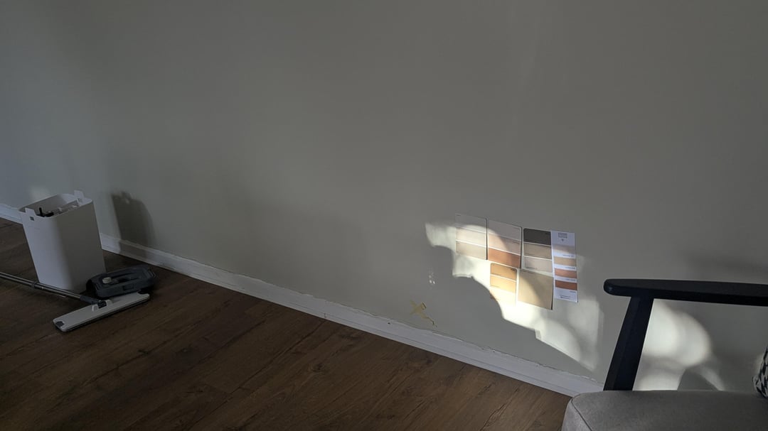 The colour swatches of paint are where I'm kind of thinking, as it's an east facing room and gets a lot of morning light.