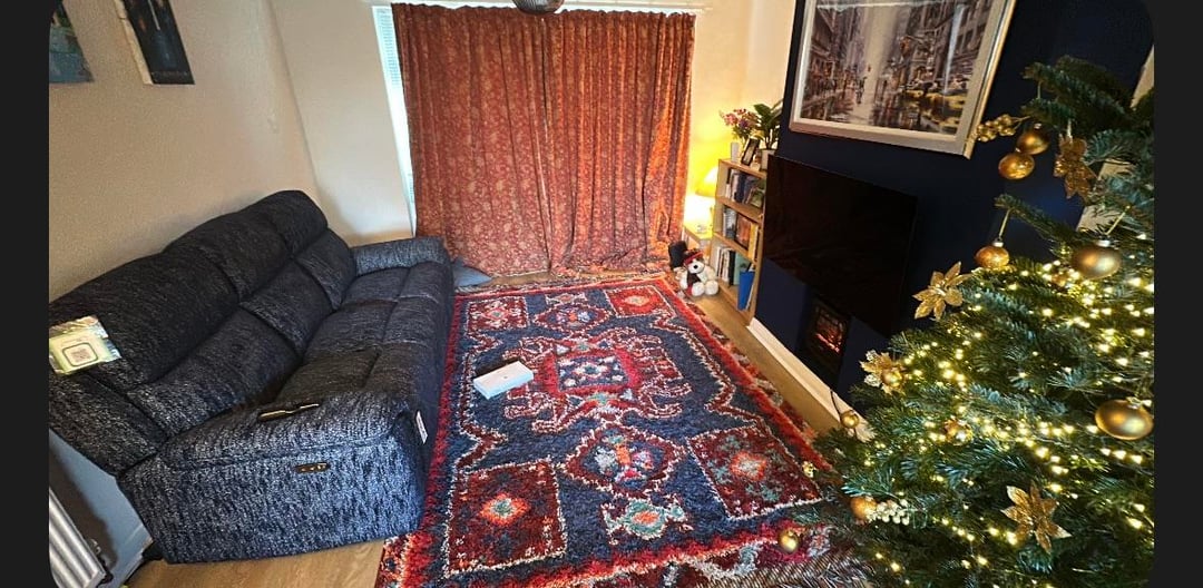 Shaggy rug update post- thank you to the person that suggested the concept of seasonal decor and swapping rugs in spring/summer. Rolled it up and it feels like a brand new room. (Pic 2 is before)