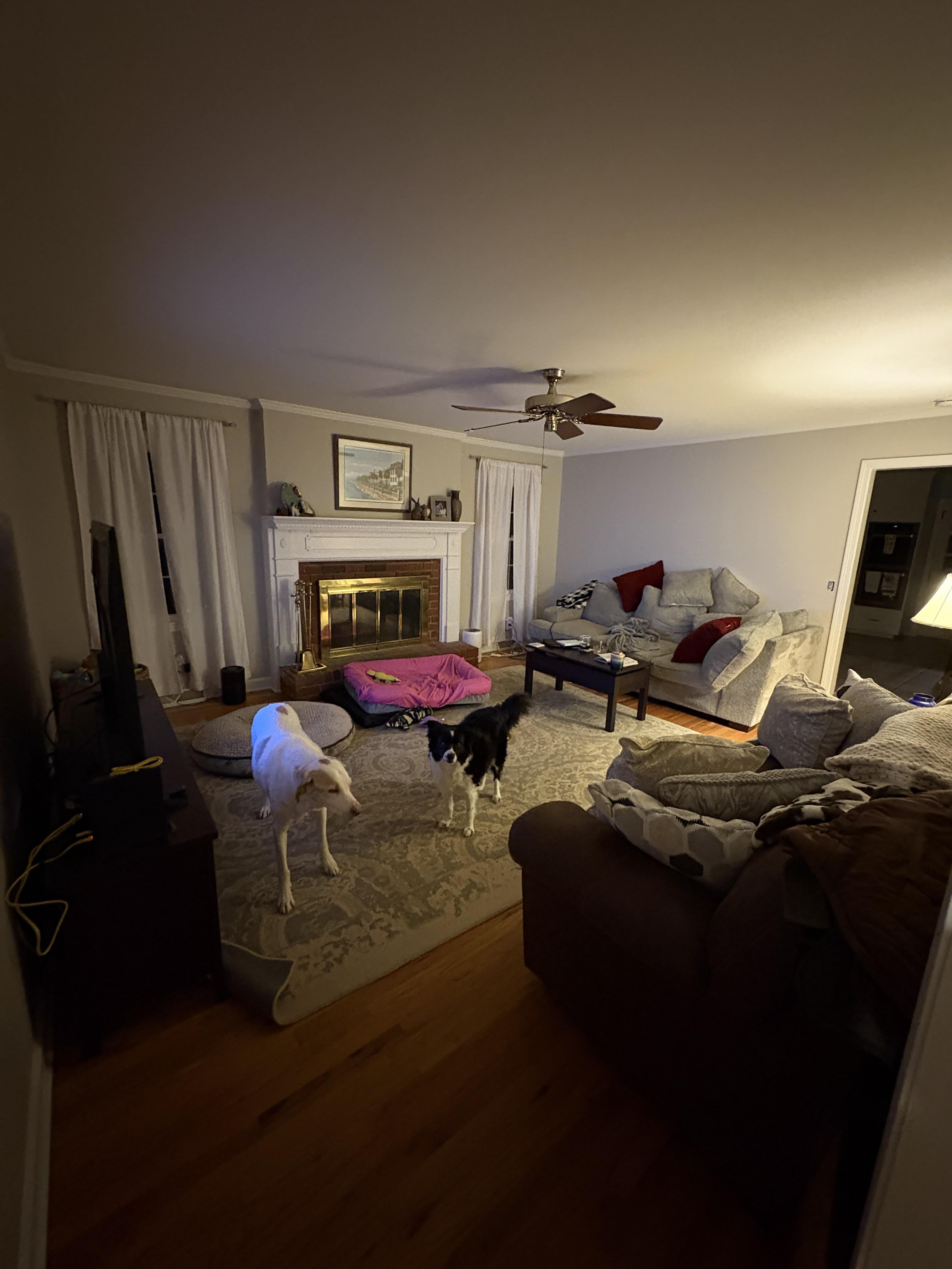 Hi all, I am getting rid of the gray couch and wondering what I should add there instead. Should I do 2 accent chairs, stick with a loveseat? Due to entryways in two spots this is the only layout I can do. I do have 2 dogs and I’m terrible at decorating