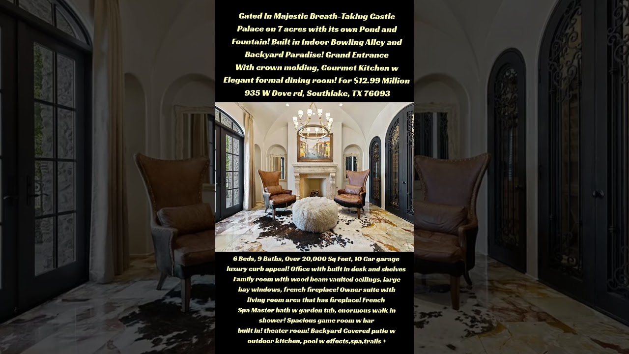 Gated In “MAJESTIC BREATH-TAKING CASTLE PALACE” Sitting on Over 7 acres with Its own Private Pond, Built in Indoor Bowling Alley and Backyard Paradise! 🏰🏰🏠 Priced $12.99 Million!!! …. Located: 935 W Dove Rd, Southlake, TX 76093