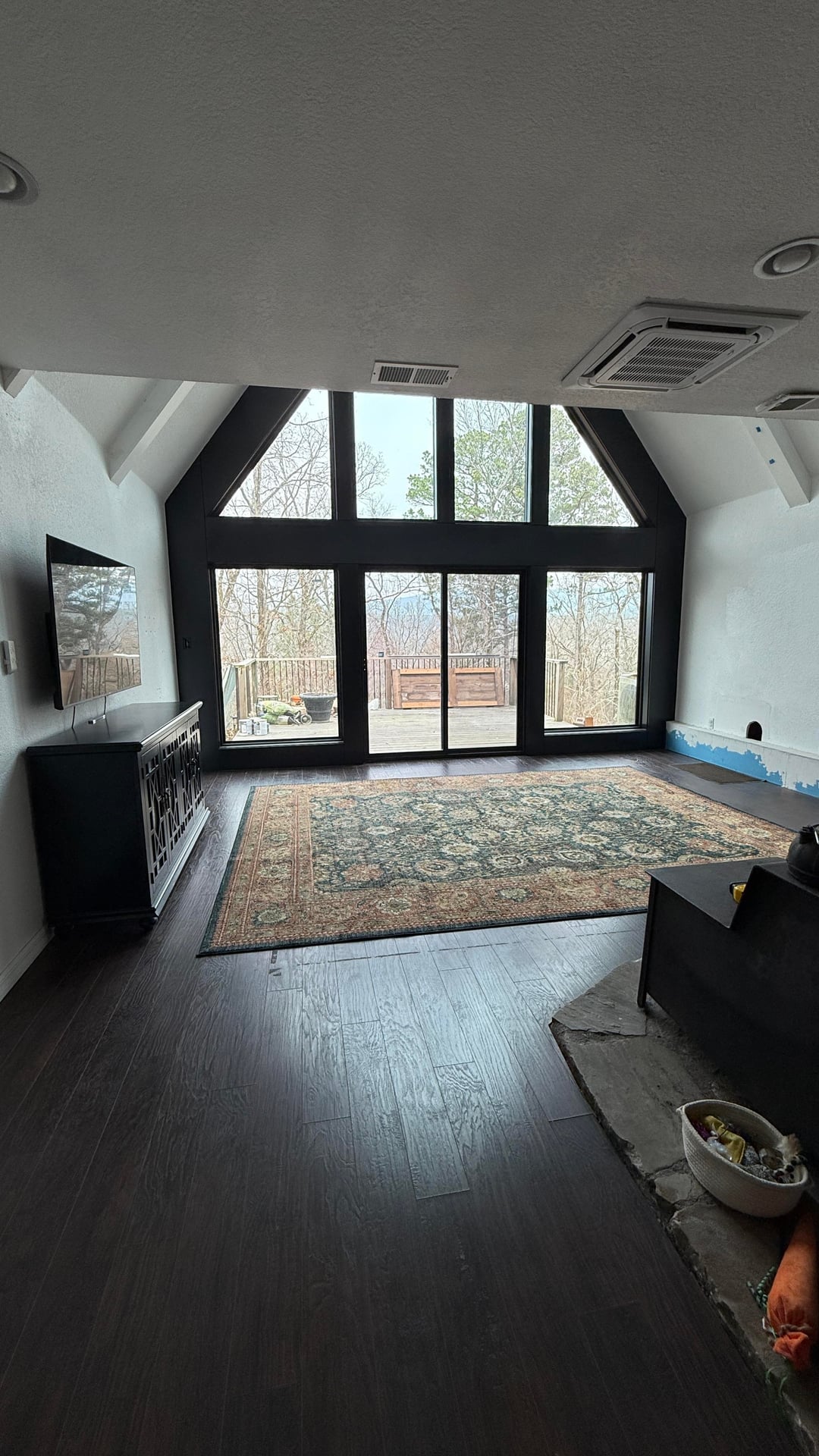 The chair in the floor layout is the wood stove which unfortunately protrudes pretty far into the roomby AskMyAnxiety home and gardenhome decoratinghome decorating ideas 2 Comments Ok-Wolf8493 2 hours ago The layout proposed is great, with the couch facing the tv within the space of the rug would look very nice xjsjxigskdnfn 2 hours ago Side note that window is incredibleWrite A CommentYou must be logged in to post a comment.