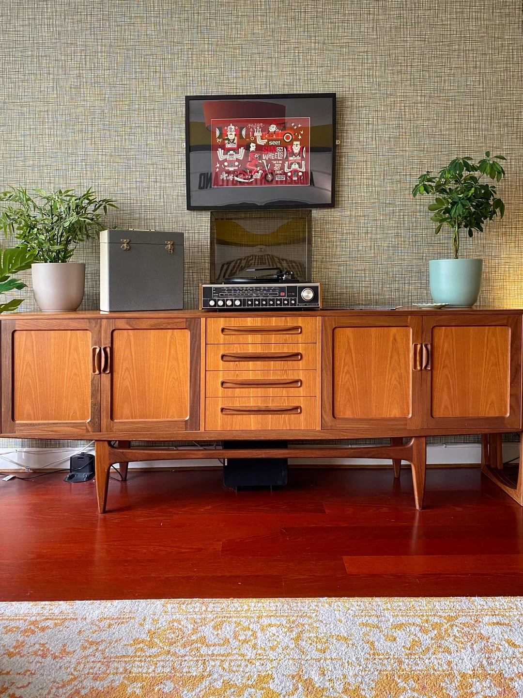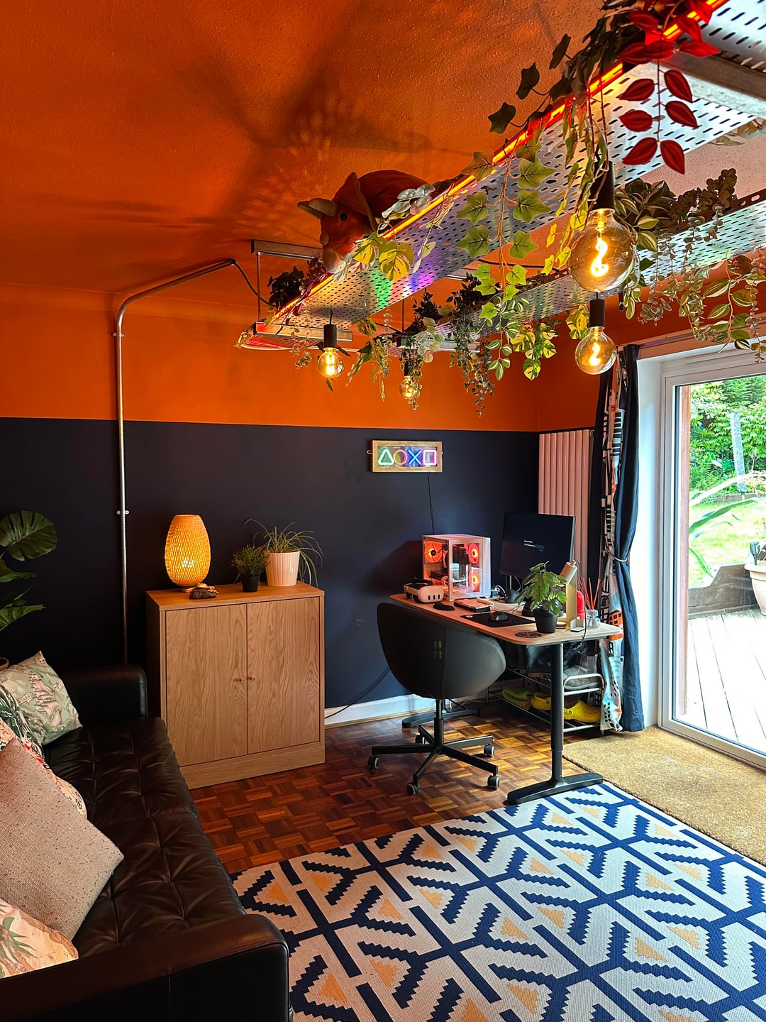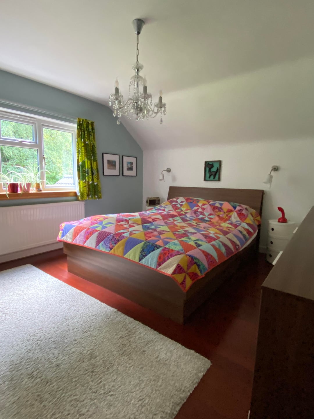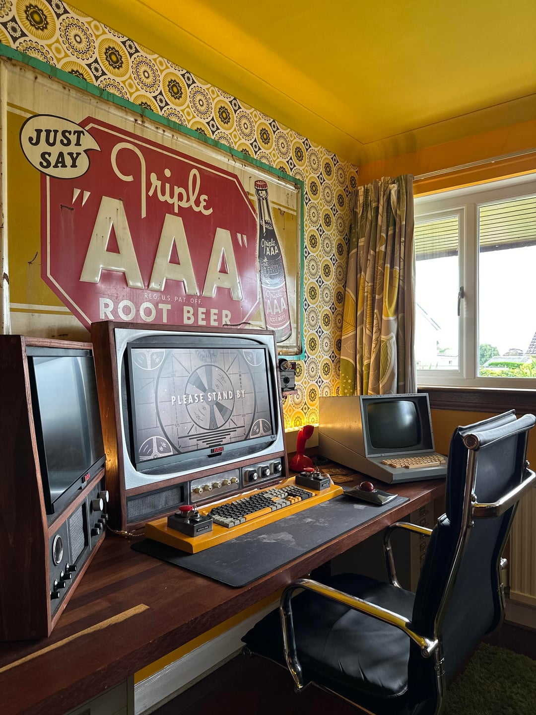 Here is our colourful home in Scotland. I've done most of the work myself, including building an extension/addition for the kitchen and building the shed, smoke shack and Tiki bar. I recently finished revamping my workshop where I like to build my googie inspired signs. We love colour and took inspiration from 50s/60s car colour charts.
