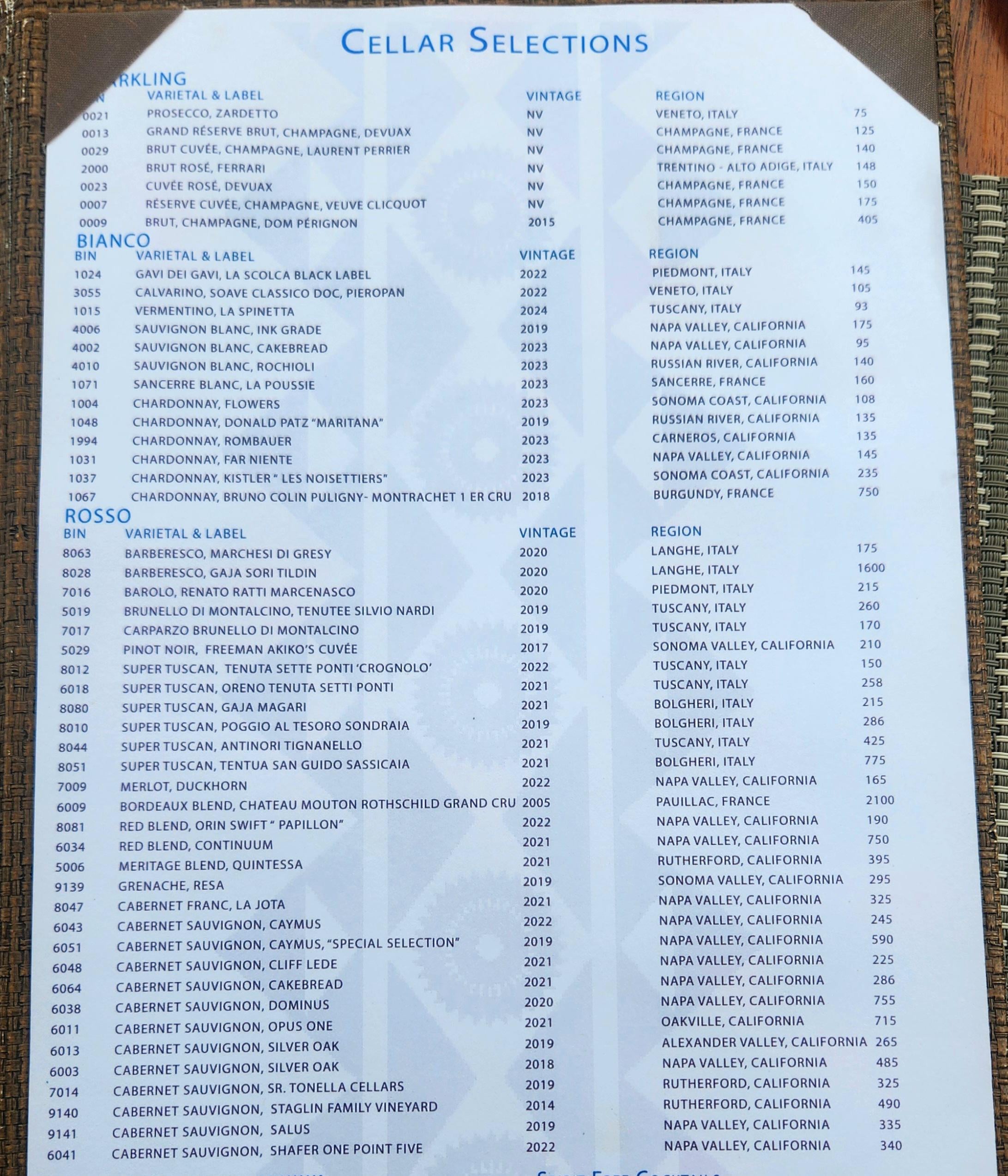 Early I posted the "by the glass" list, here is the "cellar list", by the bottle. Although I may opt for a local craft beer or a mai tai, any thoughts on this offering? Any hidden gems? 😆