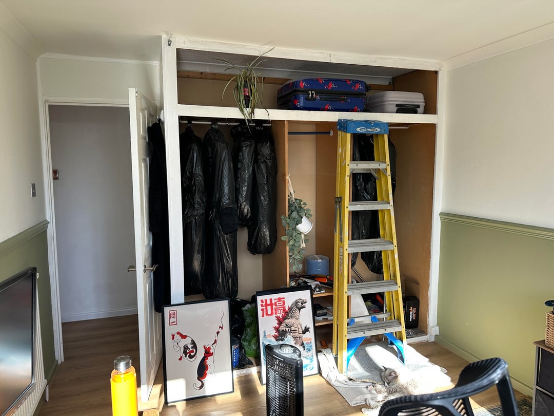 I’m going to be painting the outside of the wardrobe one of the purple shades from Farrow & Ball (see swatches). One day I will get the wardrobe redone since it’s a bit of a bodge job by the previous owners but have to live with it for now! I’m not sure whether to get a patterned curtain for both or get plain for the wardrobe and patterned for the window or vice versa.