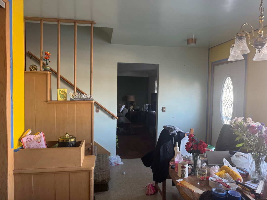 Now I can’t decide what colors would look best for the entry way and the wall closing off the dining room and going up stairs