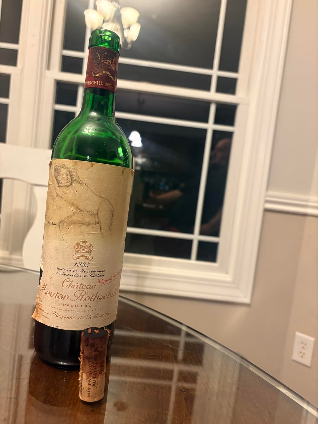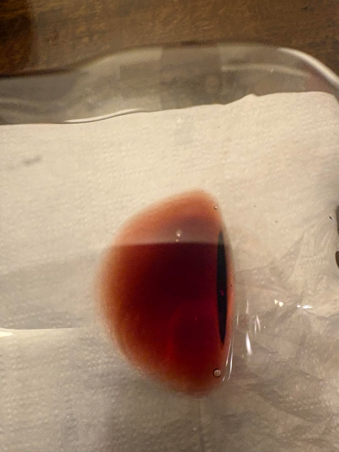 Second hand bottle has (needle?) hole in the wax