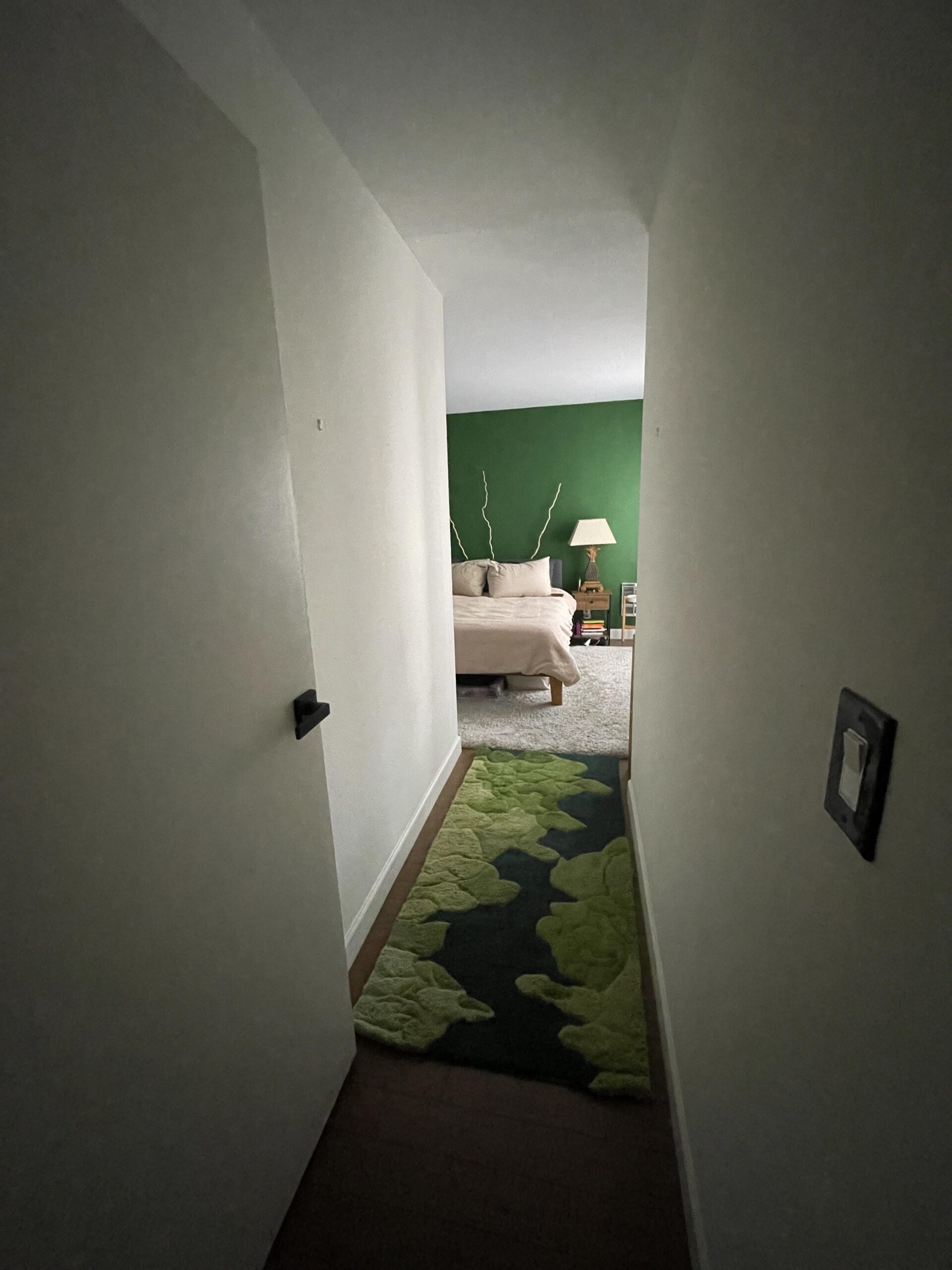 I think it would be a good idea to place a round or arched mirror on one wall. Then add a small suspended shelf with hanging plants or ceramic vases. You could also choose a series of small framed [landscape artworks](https://rartz.com/collections/landscape-art) or plant-patterned prints with simple black or natural wood borders. And place one or two warm-toned wall lamps.