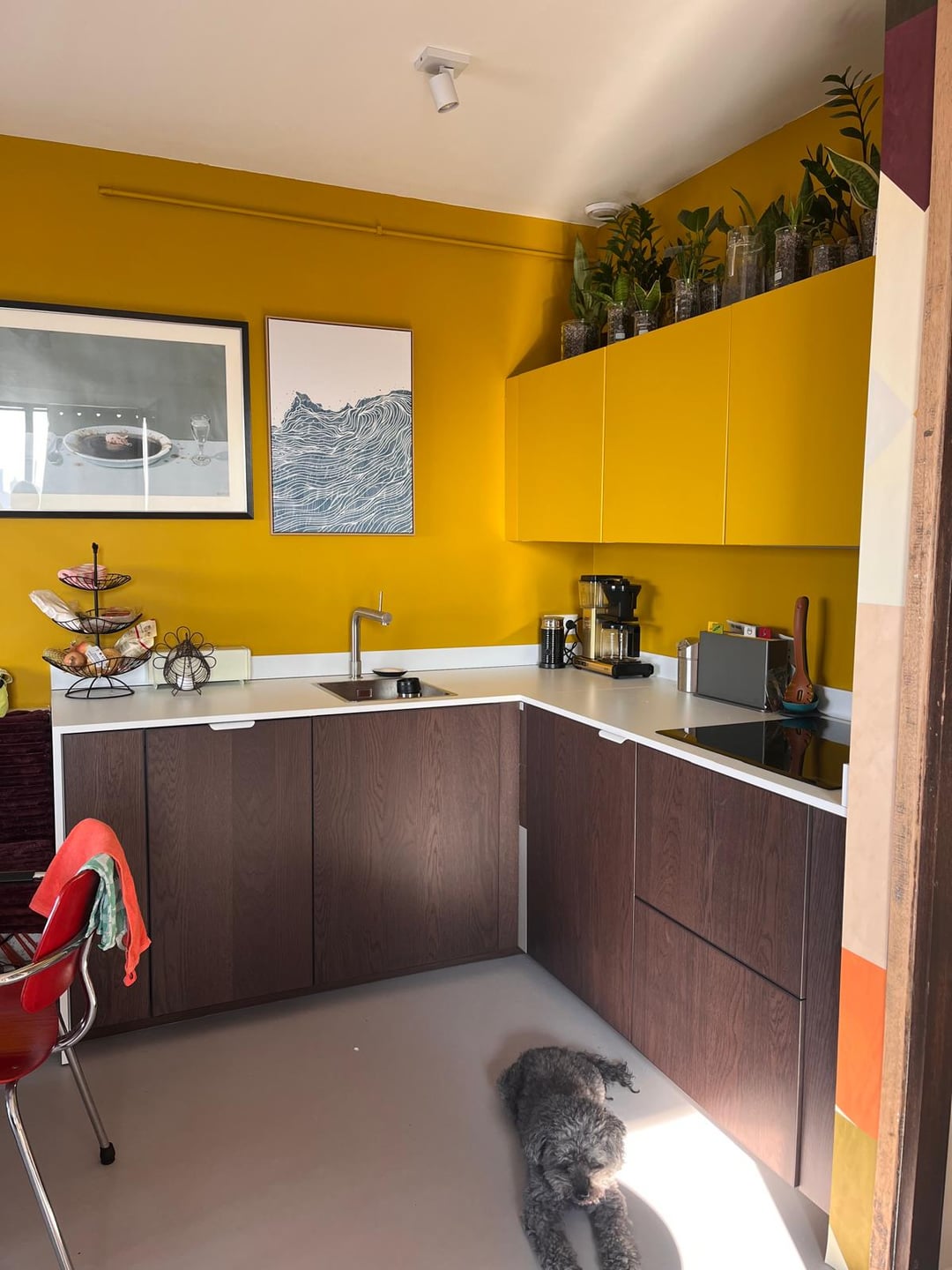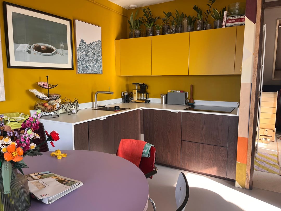 I'm not liking my kitchen top, too white maybe? What would be a nice option for a wrap that would go good with the room? Not changing the yellow or my purple dinner table 😛