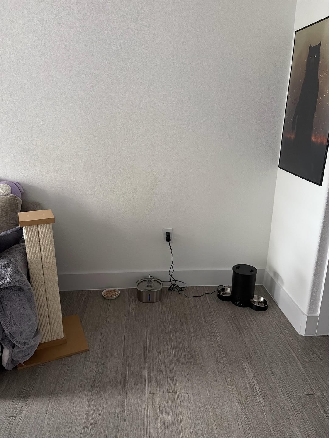 I’m still working on getting stuff to make my apartment more welcoming/homey but I don’t really have any ideas for this section, this is the best spot to keep her food and fountain so I won’t be moving it but I’d like to make it possibly more visually appealing! (The space from wall to couch is about 5’5”) Added cat photo for tax 🐱