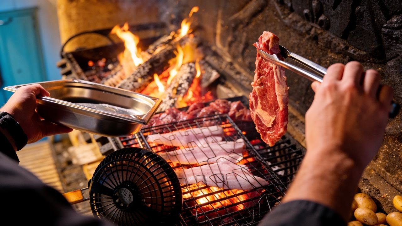 live steak cooking, real restaurant service, chef pov live, charcoal grill cooking, french steakhouse, open fire steak, kitchen live stream, grilling fish live, authentic cooking live