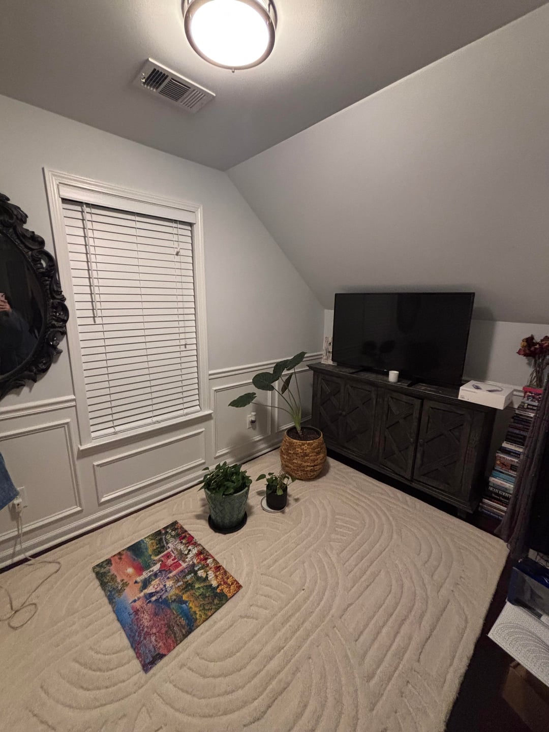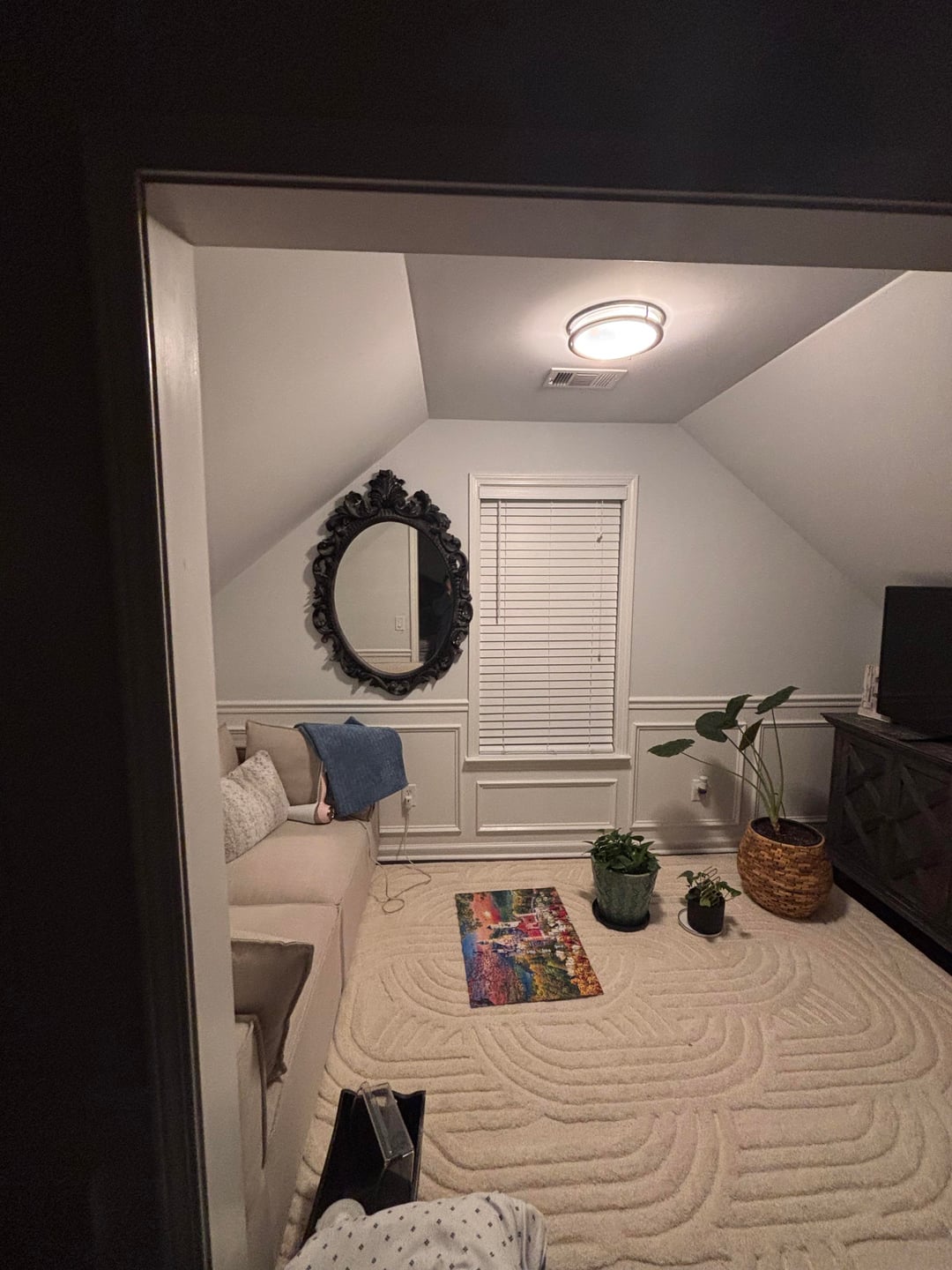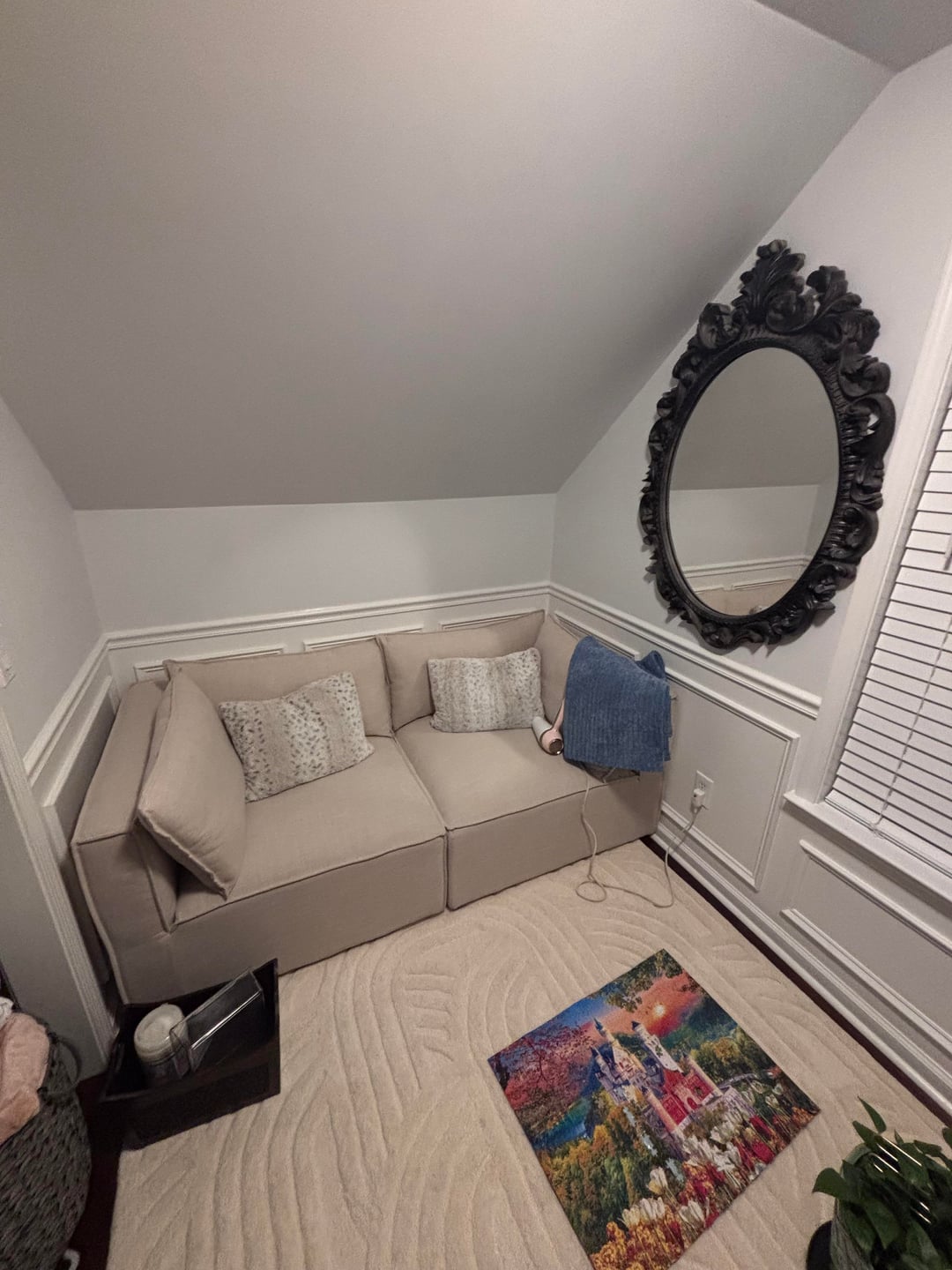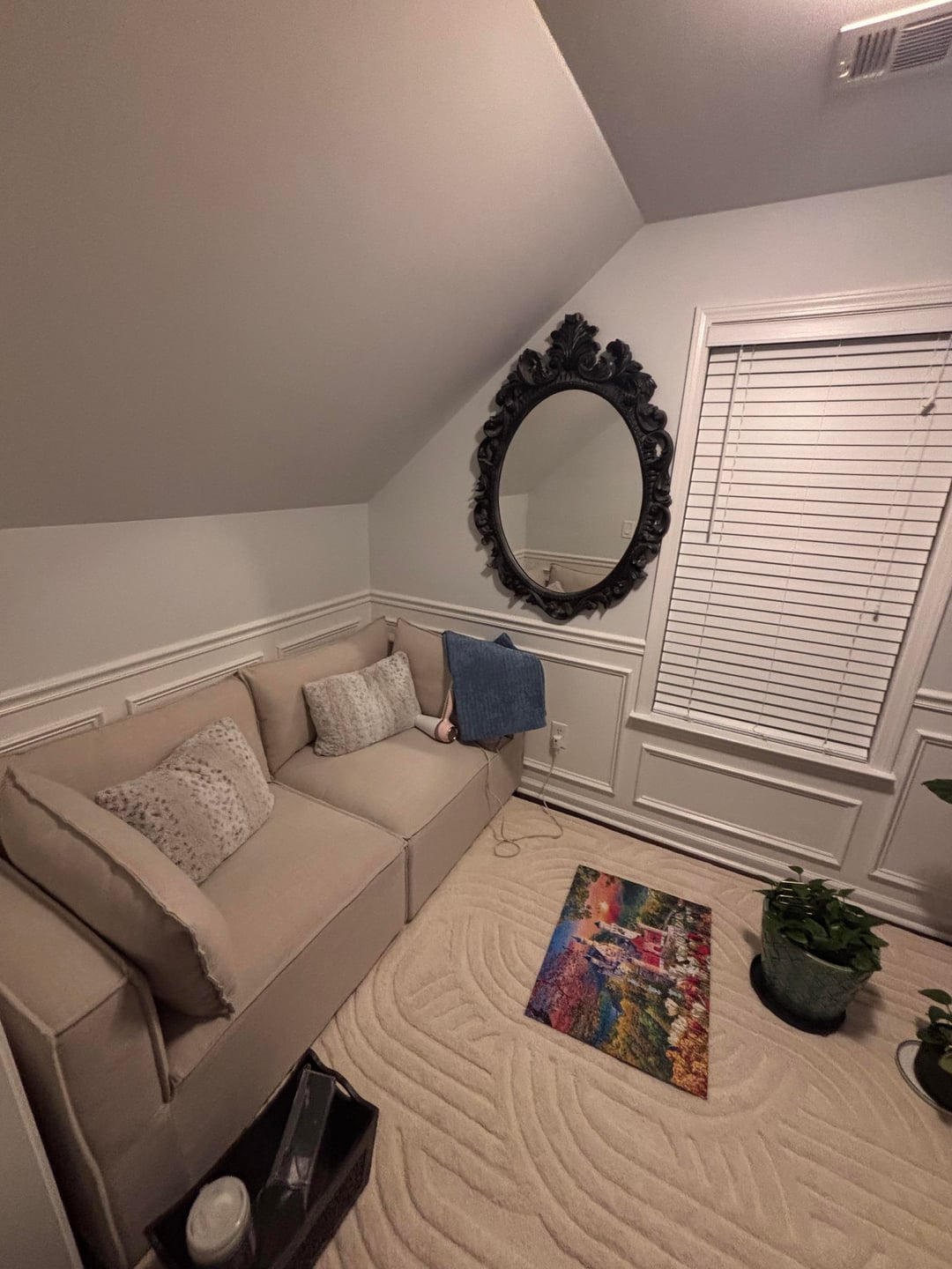 Affectionate_Ring971 2 hours ago I’d take the mirror down, looks crowded there. Do you need so much stuff in there? Could u just have a couch