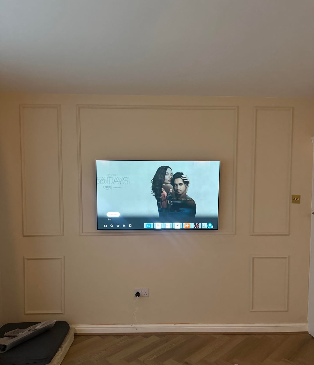 Just finished adding wall panelling and mounting the TV. The sofas will be opposite this wall and the room will have a neutral / modern look with a rug and coffee table.