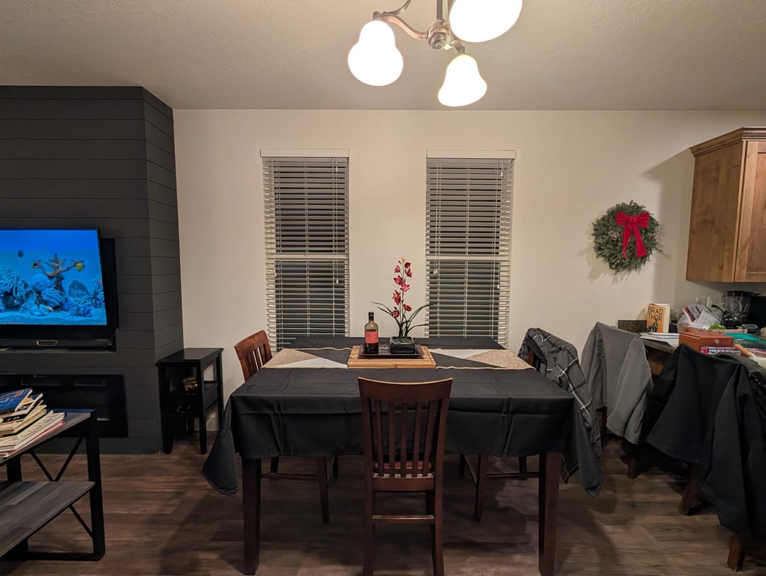 Hey all, this is my current dining area and living room. for reference, the windows in the dining area are 28.5" wide and the table is 60" x 40" (pic taken with 0.5x due to lack of room to take pic) while the living room window is 34.5" and the couch is 80" on the back. It's a little cluttered after moving some stuff in the house, but I'm having issue about how I can fix the wall issue. I'm thinking about doing some drapes, but I'm concerned about the space between to the two close window. Probably would be in an oatmeal color as I'm not huge on color and plan on adding that in with plants, art, and other decor. Any ideas? I'm new to interior decorating and could use some help. Side note, the table in the center of the couches is going out too, so ideas for tables would be very much appreciated too!