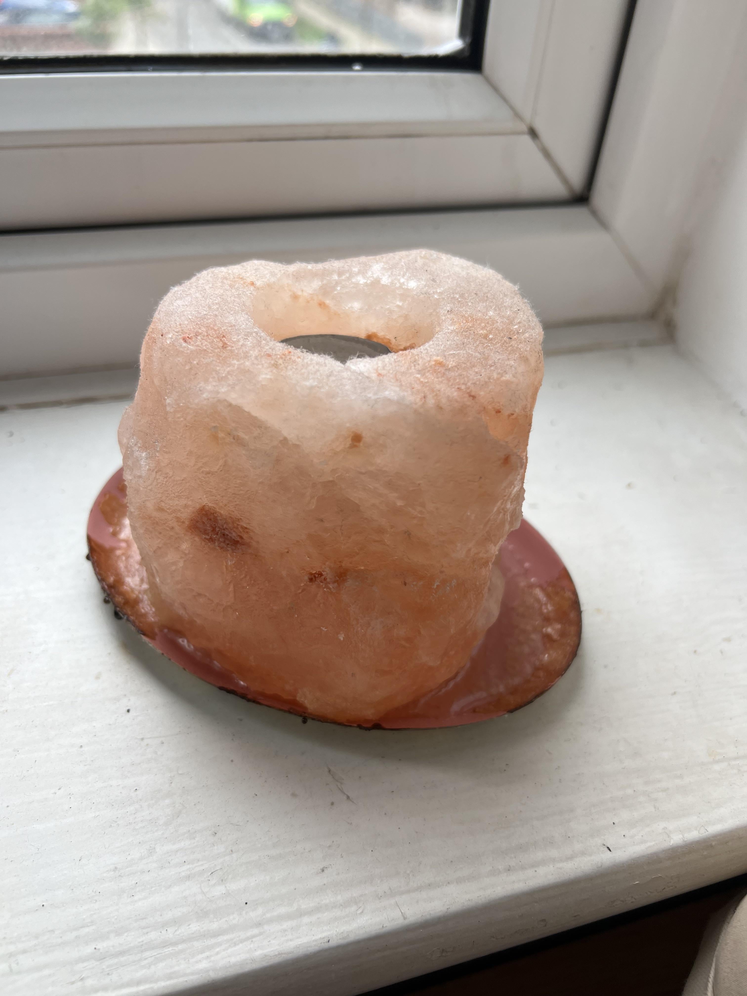 I might be missing a trick here, but I had this salt lamp on my book shelf earlier this year but it leaked onto my books and now I have it on a tray but it’s ruining the tray. I don’t want to put it on something ugly but it keeps ruining my nice things…. Any tips?