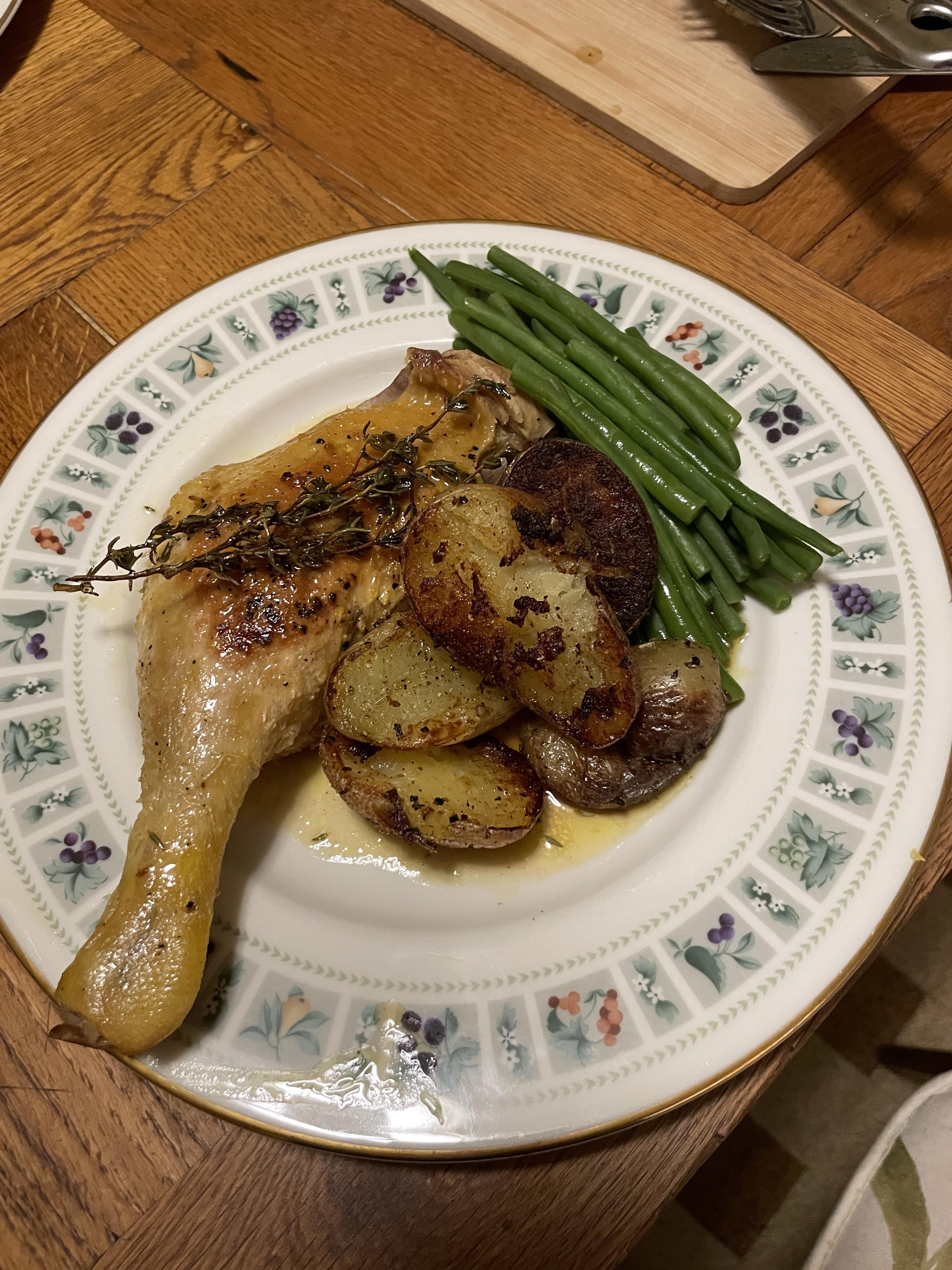 Cuisses de canard poêlées à l'orange, au thym et au miel, pommes de terre rôties à la graisse de canard et haricots verts. La prochaine fois, je rôtirai le canard pour faire fondre davantage de graisse de la peau.by Exciting_Ad_9933 Bonne BouffeCuisine d'ici et d'ailleursWrite A CommentYou must be logged in to post a comment.