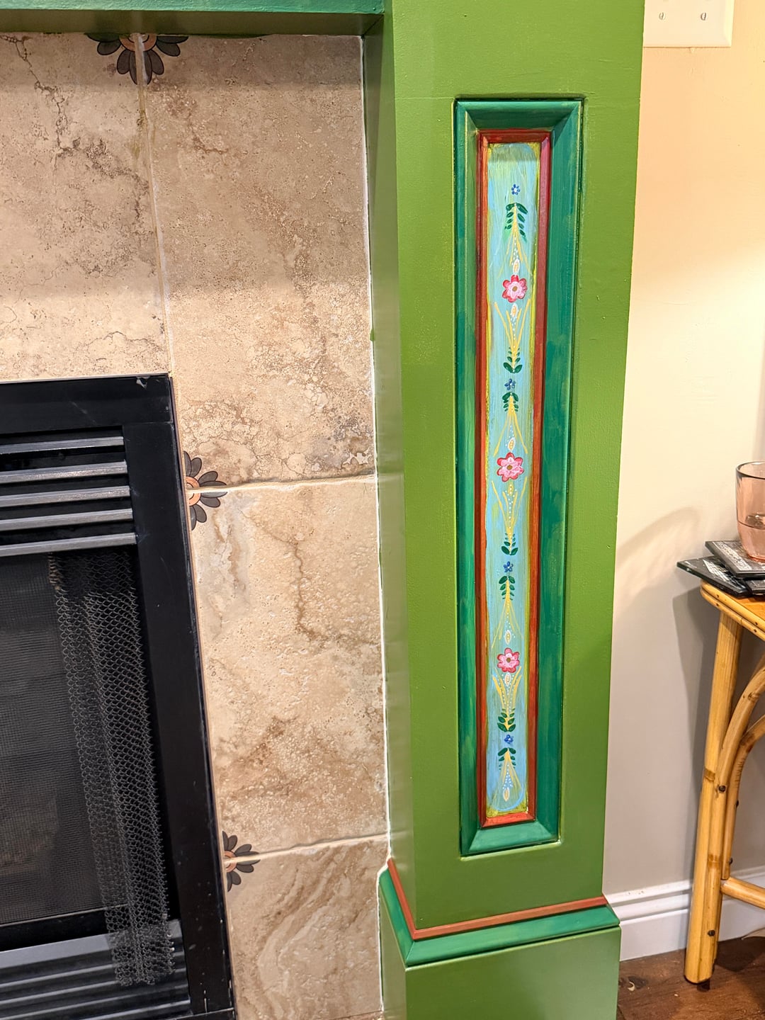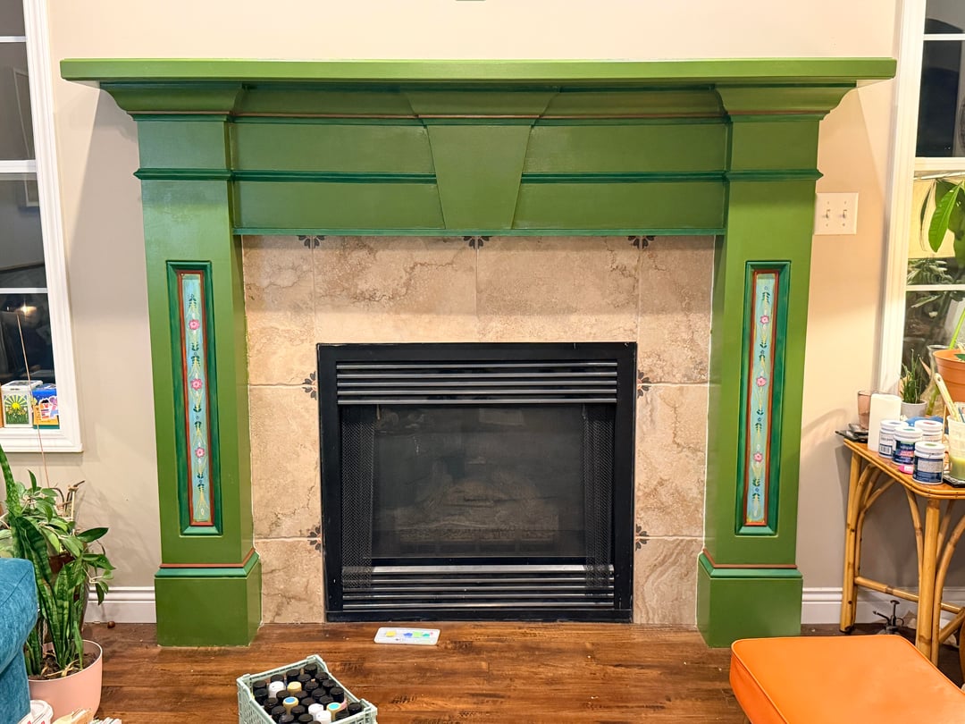 Adding whimsy to our 1999 home bit by bit! I finally like our fireplace. The colors and patterns are inspired by Norwegian folk art and the arts & crafts movement.by QueenieWas home and gardenhome decoratinghome decorating ideasWrite A CommentYou must be logged in to post a comment.