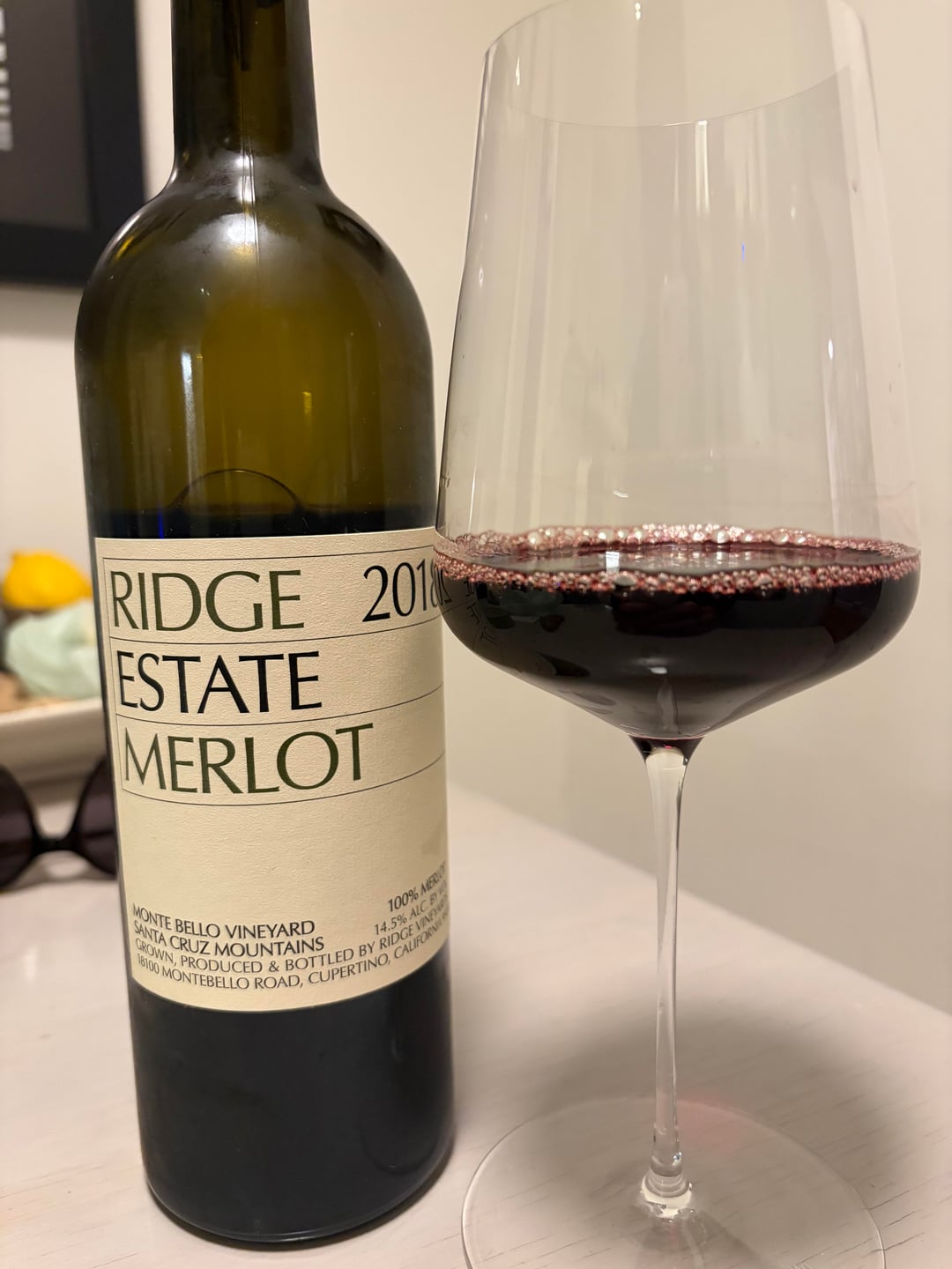 I'm always a little apprehensive about opening one of Ridge's wines with less than 10 years age on it (even if it's their merlot), but this is in a good spot. A concentration of red and dark fruits (red cherry, dark plum, blackberry, blueberry, bramble) followed by cedar, pipe. The high smooth tannins + high acidity, give the merlot a lot of structure, and balances the concentrated fruit. The 58% American oak is well integrated by now. I think even Miles would like this one. 90