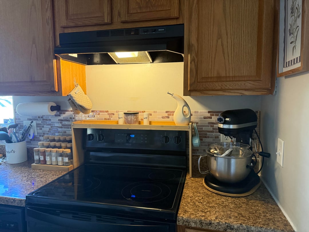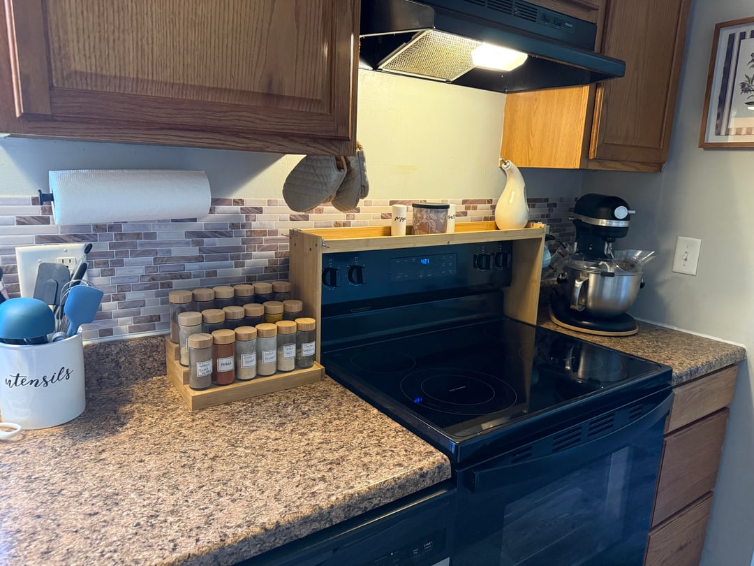 I think they turned out decent! Unfortunately, I had them flipped the wrong way so the grout line is at the bottom and it looks a little unfinished… I can either add a liner at the top, or take the tiles all the way to the cabinet. Thoughts?? I also plan to take it all the way up behind the stove, unless anyone has other suggestions (or thinks it looks okay as is!) 😌