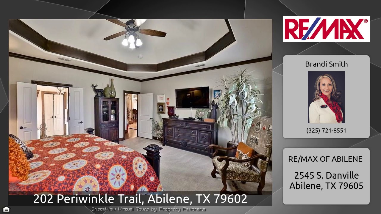 The Virtual Tour for the property at 202 Periwinkle Trail, Abilene, TX 79602 listed for $415,900: Other homes for sale by Brandi Smith of RE/MAX OF ABILENE: Elegant From The Curb And Throughout! Open Concept Floor Plan With No Detail Spared When This Immaculate Home Was Built. Boasts Meticulous Trim Work*Soaring Ceilings With Wood Beams*Stone Fireplace*Natural Light*Dining Room Offers Feature Stone Wall And French Doors*Eat In Kitchen Has Granite Countertop*Custom Cabinetry*Double Ovens*Breakfast Nook*Beautiful Fixtures*Great Entertaining Space With A Possible Bonus Room Or Second Living …