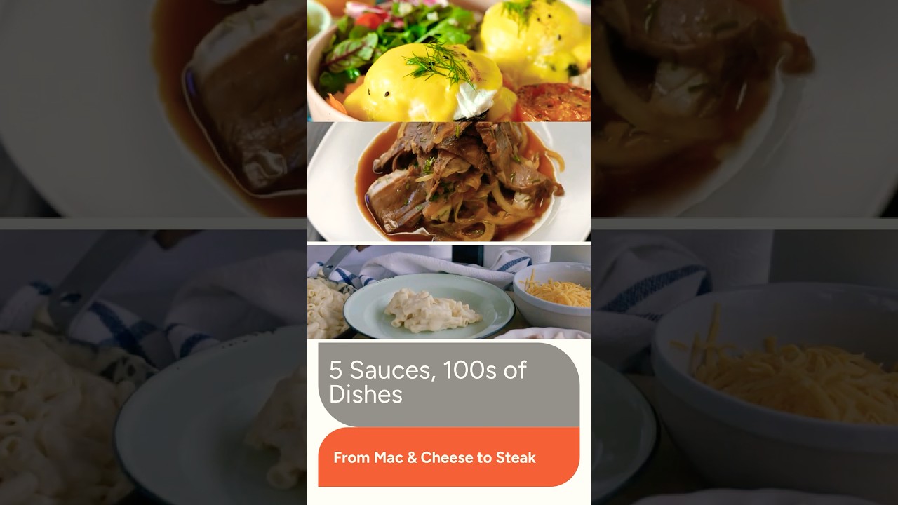 The 5 Mother Sauces of French cuisine form the base of hundreds of classic dishes. In this video, learn Béchamel, Velouté, Espagnole, Tomato, and Hollandaise with their famous derivative sauces like Mornay, Demi-Glace, Bordelaise, Marinara, and Béarnaise. Discover real dish examples including Mac & Cheese, Lasagna, Steak Bordelaise, Eggs Benedict, and Spaghetti Marinara.
