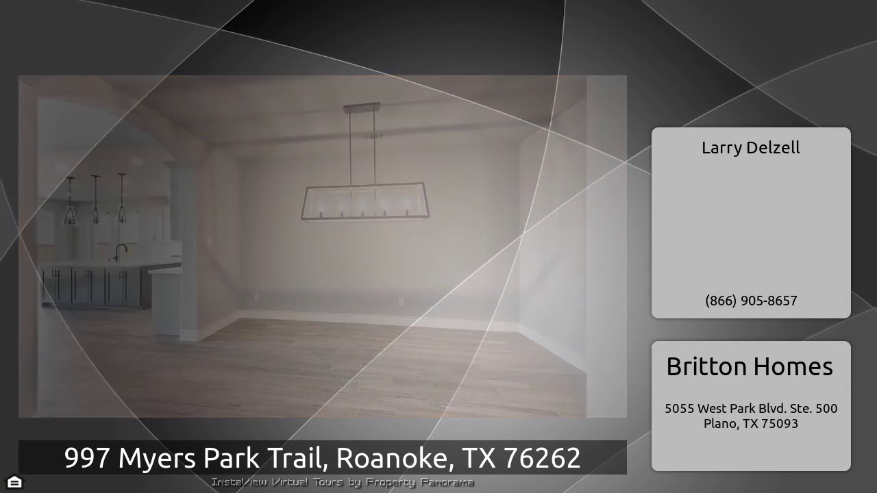 The Virtual Tour for the property at 997 Myers Park Trail, Roanoke, TX 76262 listed for $637,900: Other homes for sale by Larry Delzell of Britton Homes: PERRY HOMES NEW CONSTRUCTION READY FOR MOVE-IN! Mahogany front door. Two-story entry with a circular staircase. Library with French doors. Formal dining room with ceramic tile floor. Two-story open family room with ceramic tile floor and a wall of windows. Kitchen and morning area open to family room. Master bedroom with 12-foot ceiling. Master bath with dual vanities, garden tub, a separate enclosed glass shower and a walk-in closet. …