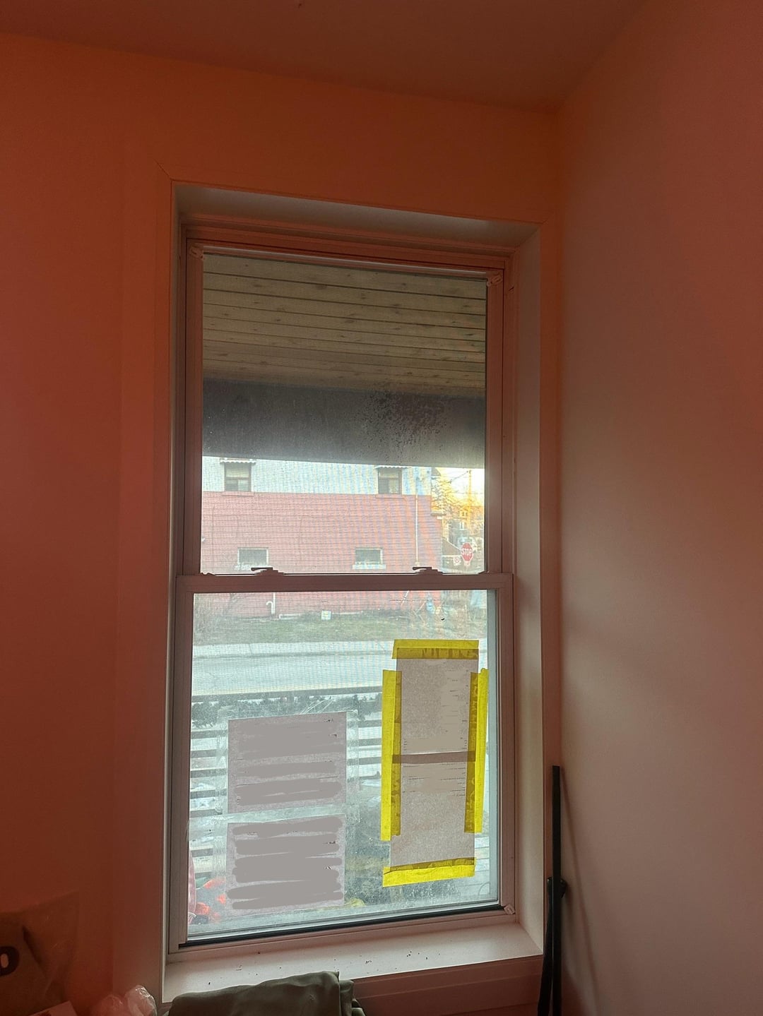 – window on the right is kind of cut off by the wall, it’s so close to it that it loses half it’s trim in the right side (see second pic), which makes doing a rod and long curtain look weird. Not enough width for the rod and curtain to sit comfortably.