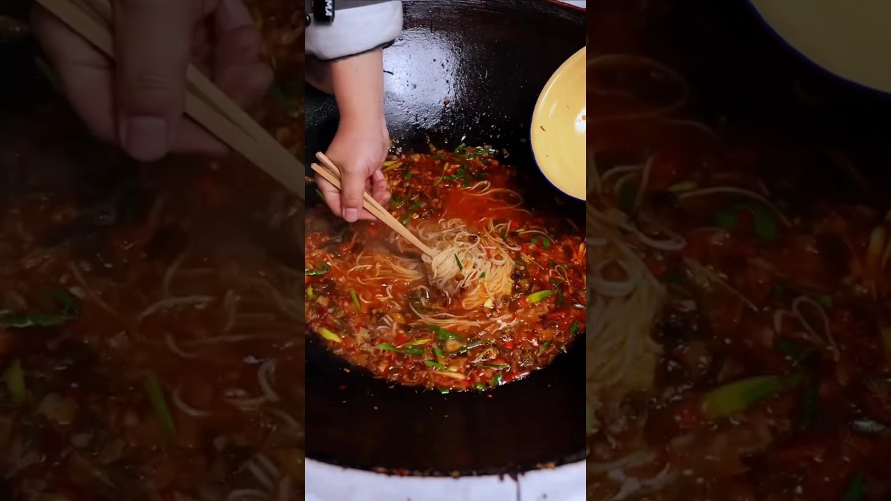 Today’s breakfast is: homemade kimchi rice noodles and flatbread!#gourmet food#RuralLife #ricenoodle #food #cake #reels #cooking #breakfast #delicious #deliciousfood