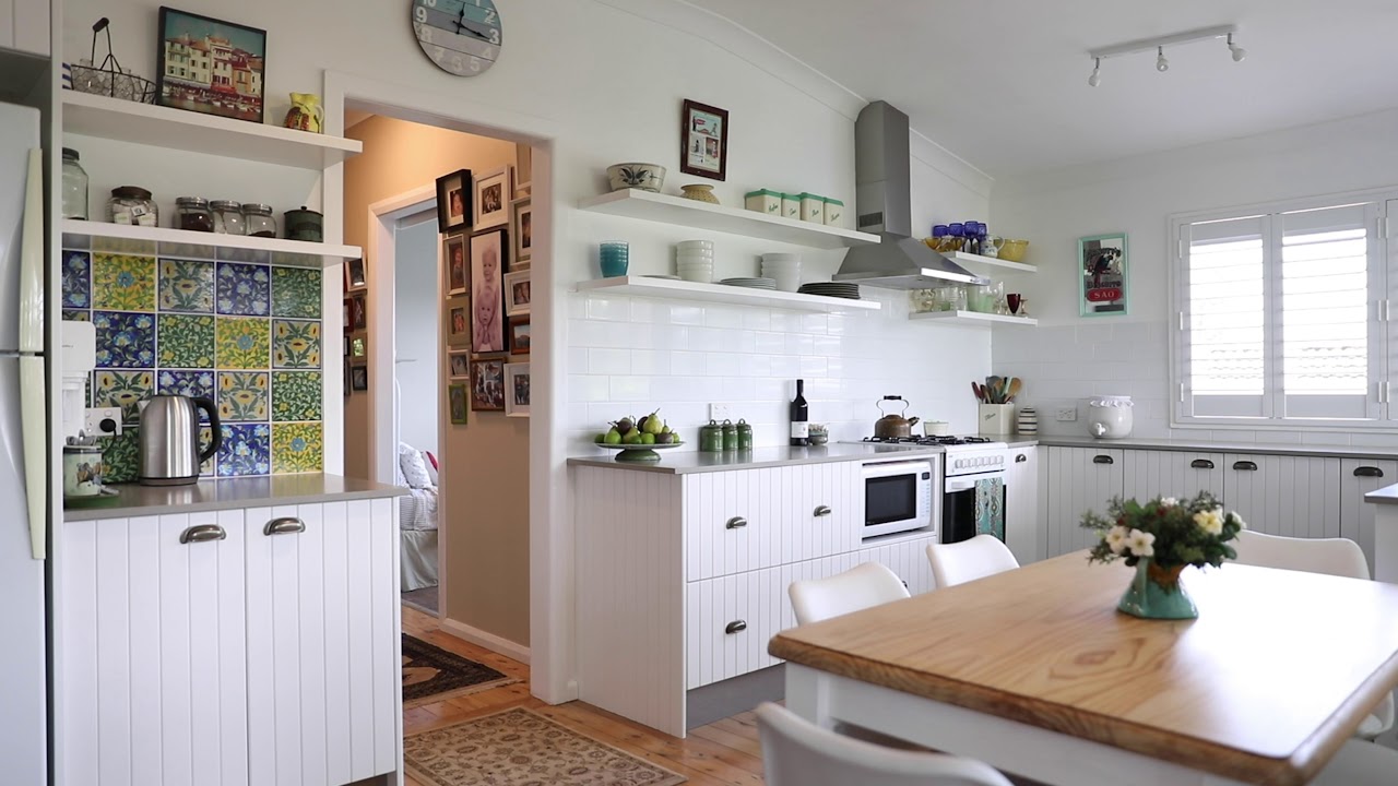 • Hamptons-style kitchen with stone benchtops; renovated in 2017