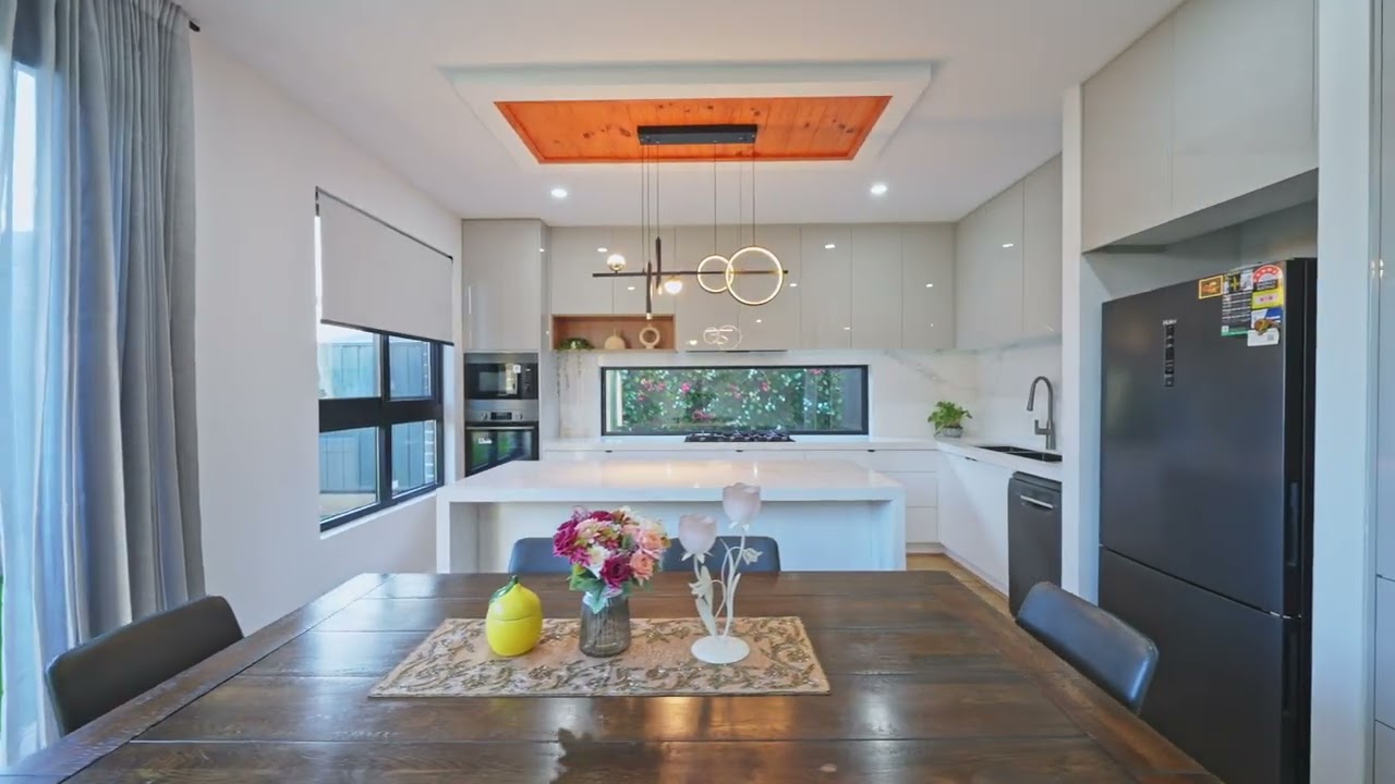 * Gourmet chef kitchen with bulkhead, premium cabinetry, designer lights, schweigen rangehood , bosch dishwaher, inbuilt microwave,