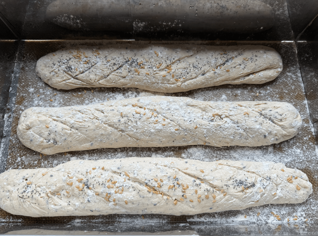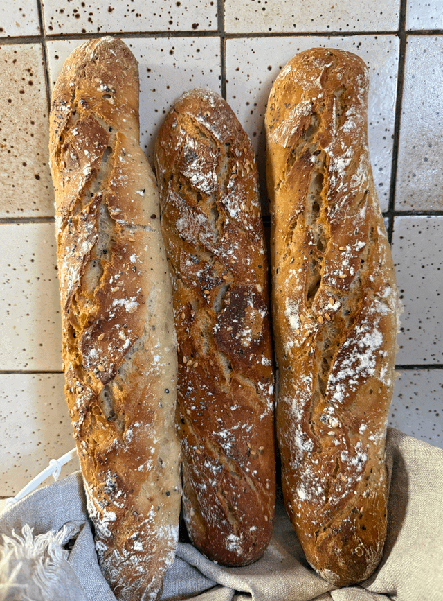 Baguettes aux lin blond et brun, pavot bleu et sésame noir ! Pourquoi ? paske j'écoule le stock de graines 😅