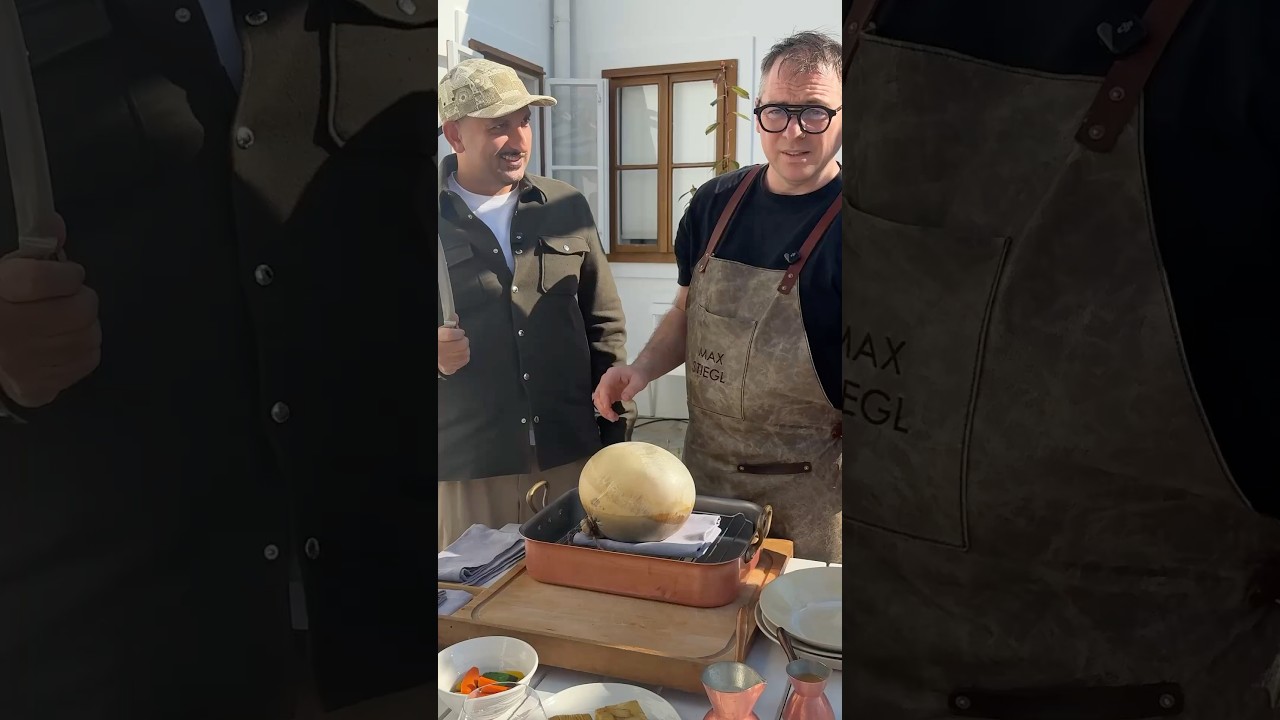 Am Tisch wird die Schweinsblase aufgestochen – und ein Schwall trüffeliger Hühnerjus kommt heraus.
