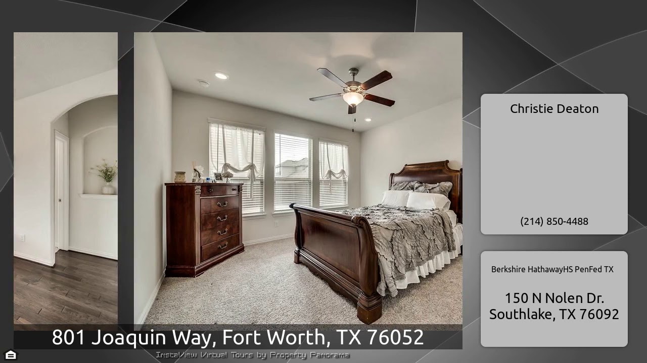 The Virtual Tour for the property at 801 Joaquin Way, Fort Worth, TX 76052 listed for $307,000: Other homes for sale by Christie Deaton of Berkshire HathawayHS PenFed TX: MOVE-IN READY! LIKE NEW. Beautiful 4 bed, 3.5 bath Lennar built home on corner lot in desirable Sendera Ranch. Formal dining room with french doors, can also be used as an office. Kitchen open to breakfast nook and family room, featuring quartz counter tops, gas range, ss appliances. Spacious master suite with dual sinks, garden tub, separate shower, and walk-in closet. Large game room upstairs with 3 large secondary …