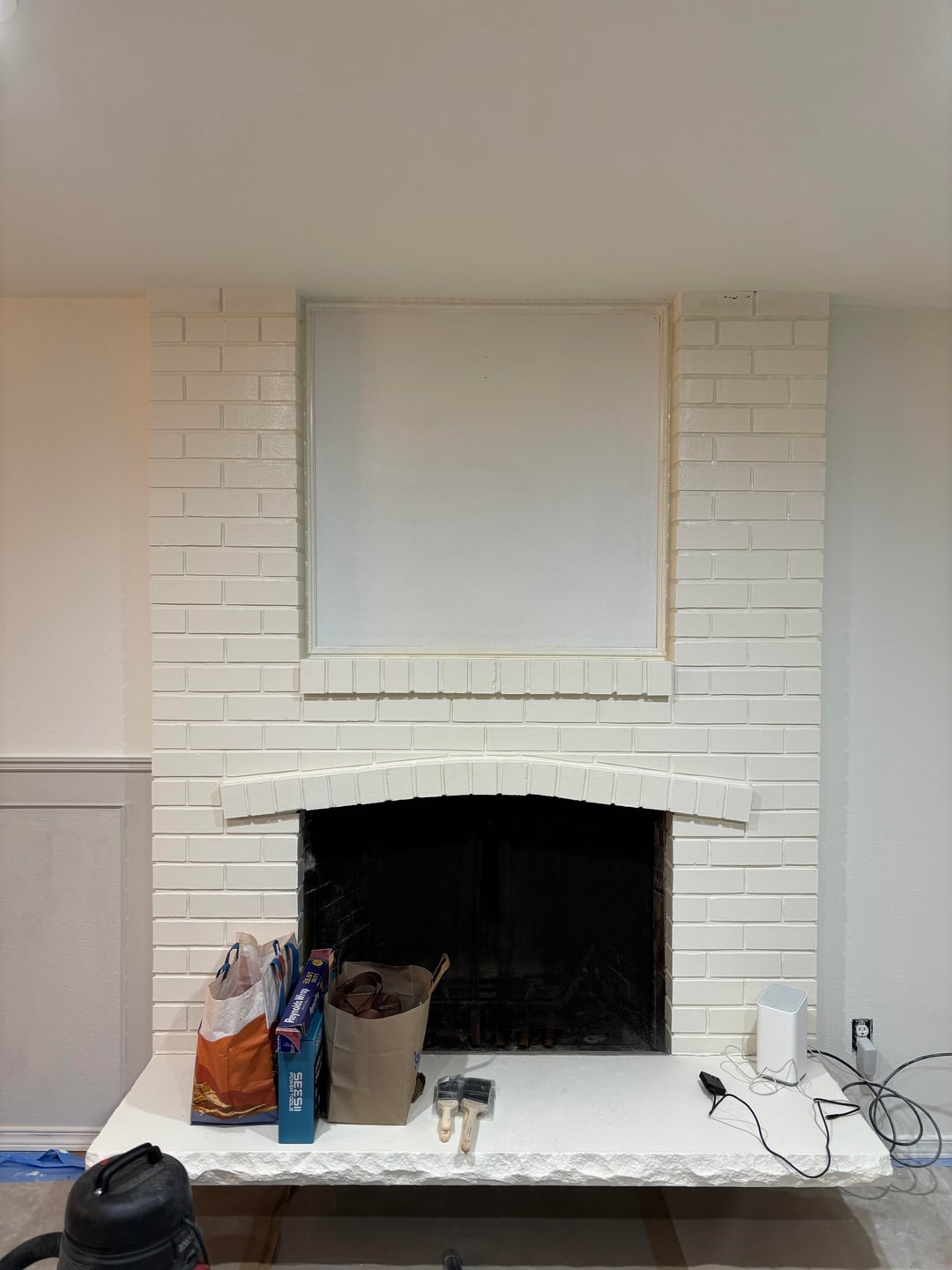 Left grey-ish color is called vessel from Sherwin Williams and is supposed to be a beige. Appears more grey however this is only the first coatRight white-ish color is an off white called alabaster from Sherwin Williams by jiujitsuaccount home and gardenhome decoratinghome decorating ideas 3 Comments Godman_ 3 hours ago Olive green I think will work. MarvinDMirp 3 hours ago Personally, I would keep the alabaster and consider painting the wainscot alabaster as well. Vessel is not working for the light you have in this space. kjperkgk 3 hours ago 😈 get it media blasted so it’s natural brick again.Write A CommentYou must be logged in to post a comment.