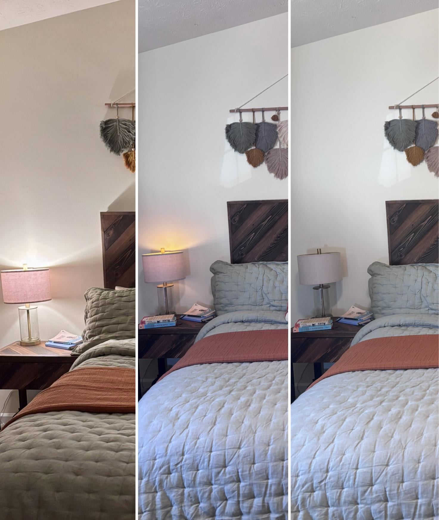I didn’t see it as pink until everyone here pointed it out yesterday. The shades are linen-look with a plastic backing and came with the laps from Amazon.