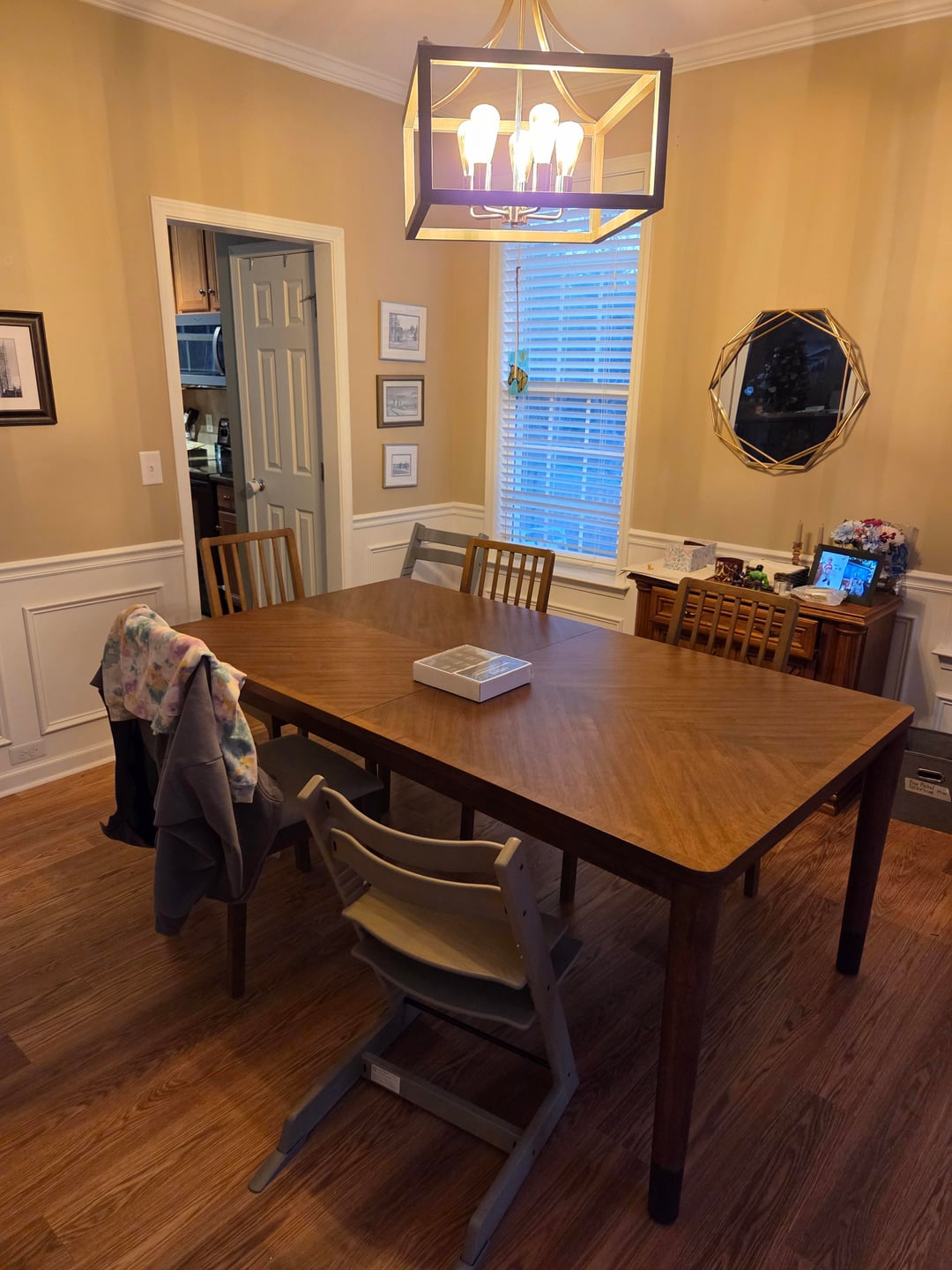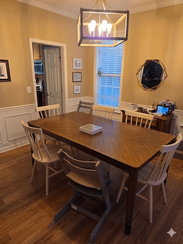 So I got a dark wood table that I love but did not realize how dark it would look in my space. I need new dining chairs to go with the table but I am scared of buying chairs in the same tone because I'm worried it will be super dark. I can't put a rug under the table because I have two small kids who are extremely messy eaters and can't have upholstered dining chairs for the same reason. Would a light colored chair in a warm tone be okay? Or should I be looking for something completely different?