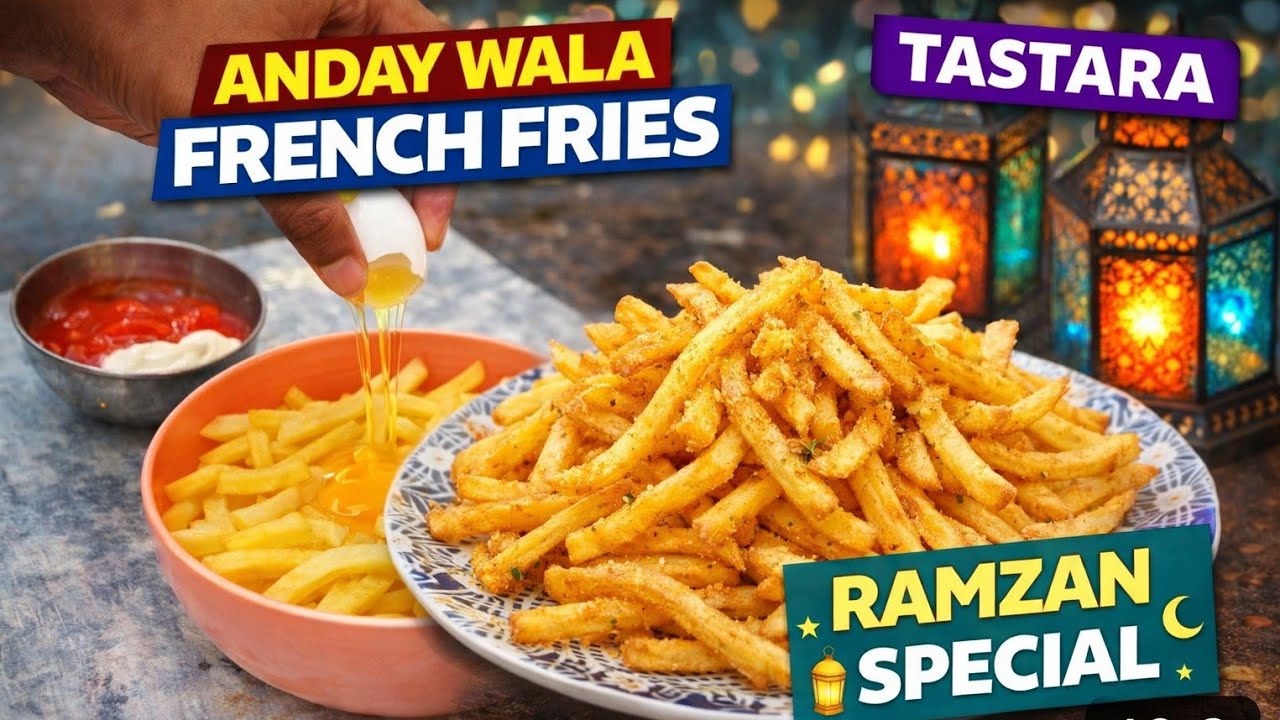 Welcome to Tastara! 🍳🌙nnLearn how to make **crispy Anday Wala French Fries** at home – perfect for Ramzan Iftar. Simple ingredients, golden crispy fries with a flavorful egg coating, easy to make and full of taste.nn📅 Ramzan Special: New videos every day at 7 PMn📍 Made in Pakistan, enjoyed everywhere 🌎nnIngredients:n- Potatoesn- Eggsn- Corn flourn- Salt & peppern- Oil for fryingnnMethod:n1. Cut potatoes into long friesn2. Boil eggs and prepare corn flour battern3. Coat fries with egg battern4. Fry until golden and crispyn5. Serve hot with ketchup or saucenn#Tastara #AndayWalaFries #FrenchFriesRecipe #RamzanSpecial #IftarRecipe #EasyCooking #HomeCooking #PakistaniFood